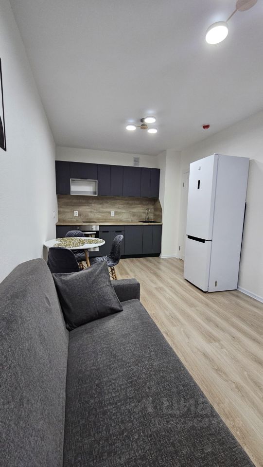 Сдается светлая однокомнатная квартира на 20 этаже монолитного дома 2025 года постройки, расположенного в новом благоустроенном ЖК Ручьи. В квартире выполнен свежий ремонт, до этого никто не жил. Просторная кухня оборудована новым гарнитуром, обеденной группой и всей необходимой техникой, включая посудомоечную машину. Также в кухне выделена гостиная зона с раскладным диваном и ТВ-тумбой. В комнате установлены большая кровать и вместительный шкаф. Идеальный вариант для одиночного проживания или пары- благодаря удобной планировке у каждого будет личное пространство для отдыха. Санузел совмещенный, оборудован душевой кабиной, стиральной машиной и мебелью для хранения. В прихожей предусмотрены полки для обуви. Из окон открывается красивый вид на город с закатной стороны. Дом новый, оснащён тремя пассажирскими лифтами и одним грузовым. Красивое благоустройство во дворе, в ЖК есть всё необходимое - магазины, ВБ, озон. Рядом выезд на КАД. Квартира полностью готова к заселению. Пишите или звоните, с удовольствием покажем в удобное время. Квартира сдаётся от собственника напрямую, без комиссий, агентства прошу не беспокоить.