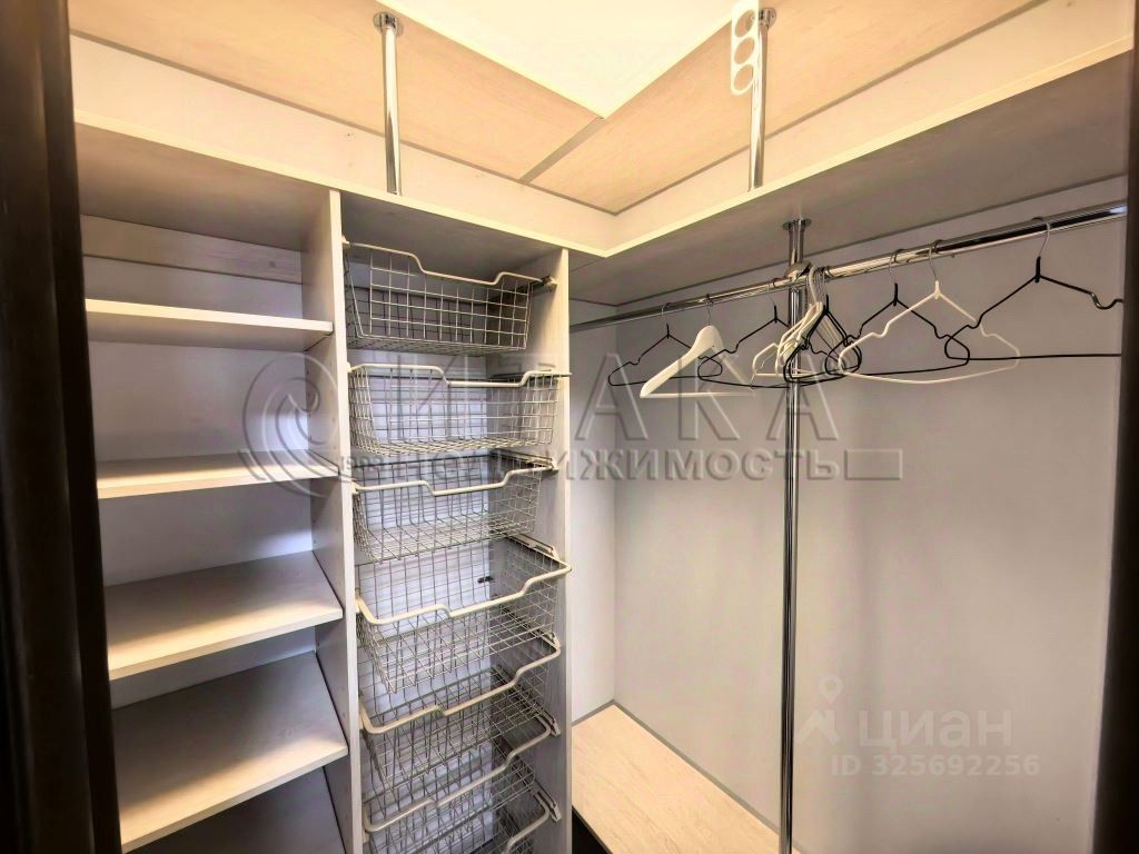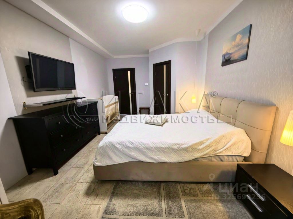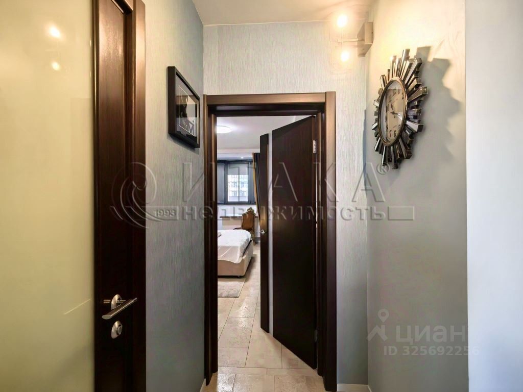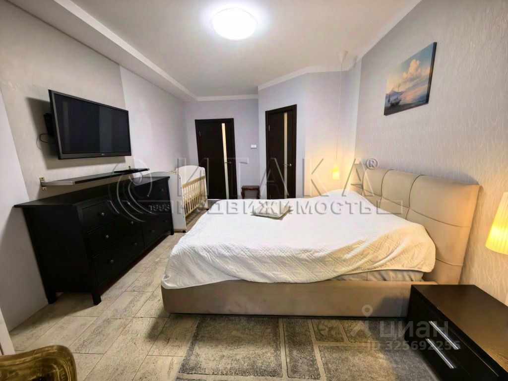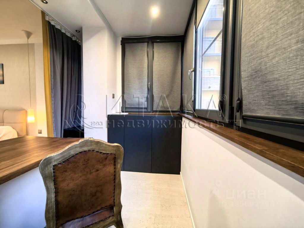 Квартира имеет кухню 16 м², две комнаты 19 и 18,6 м², отдельное помещение для стиральной машины. Выполнен качественный ремонт с пробковыми полами, продуманным освещением. Лоджия с тёплым остеклением и подогревом пола. Встроенные системы хранения: шкаф-купе и гардеробные.