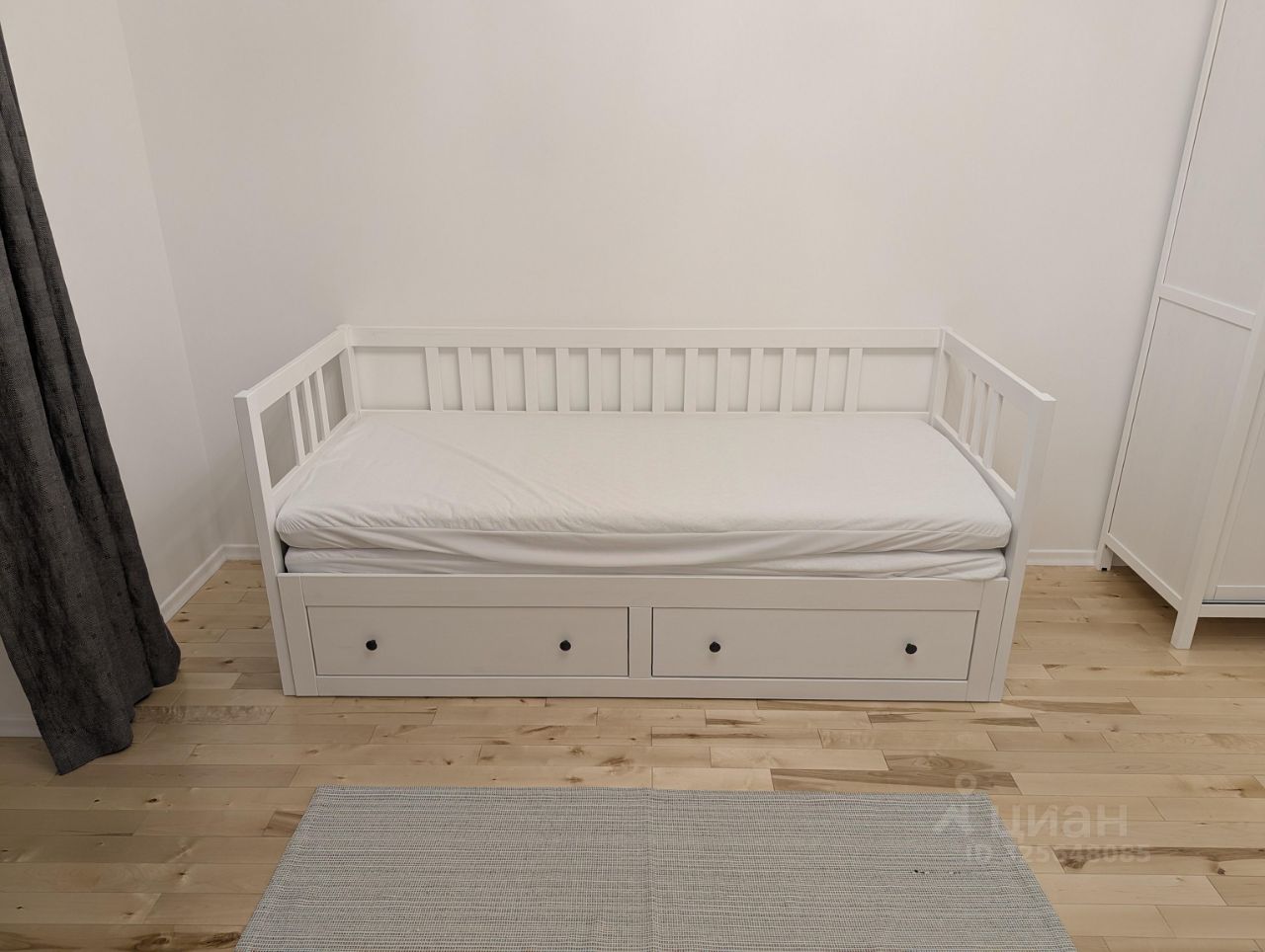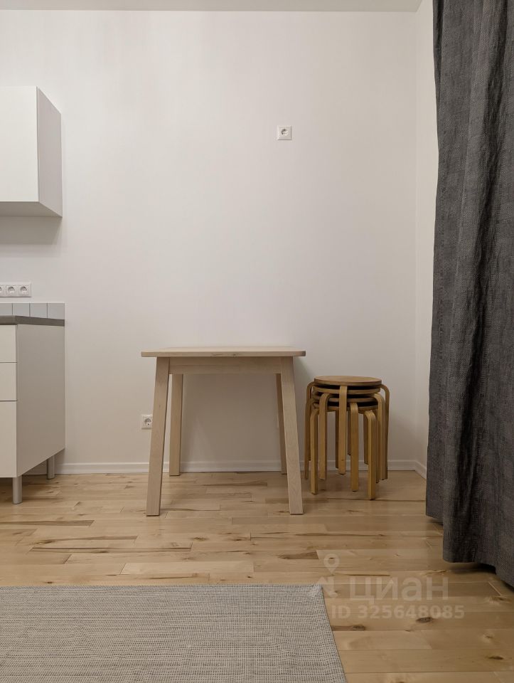 Студия светлая и аккуратная, с деревянным полом и продуманной планировкой. Окна выходят на улицу, но в квартире тихо: между комнатой и улицей — застекленная лоджия, которая дополнительно защищает от шума. В квартире установлена современная техника: варочная панель Beko, духовой шкаф Grundig, холодильник Hotpoint, стиральная машина Gorenje, пылесос Tefal, качественная сантехника Grohe и Hansgrohe. Интернет подключим по требованию арендатора.
