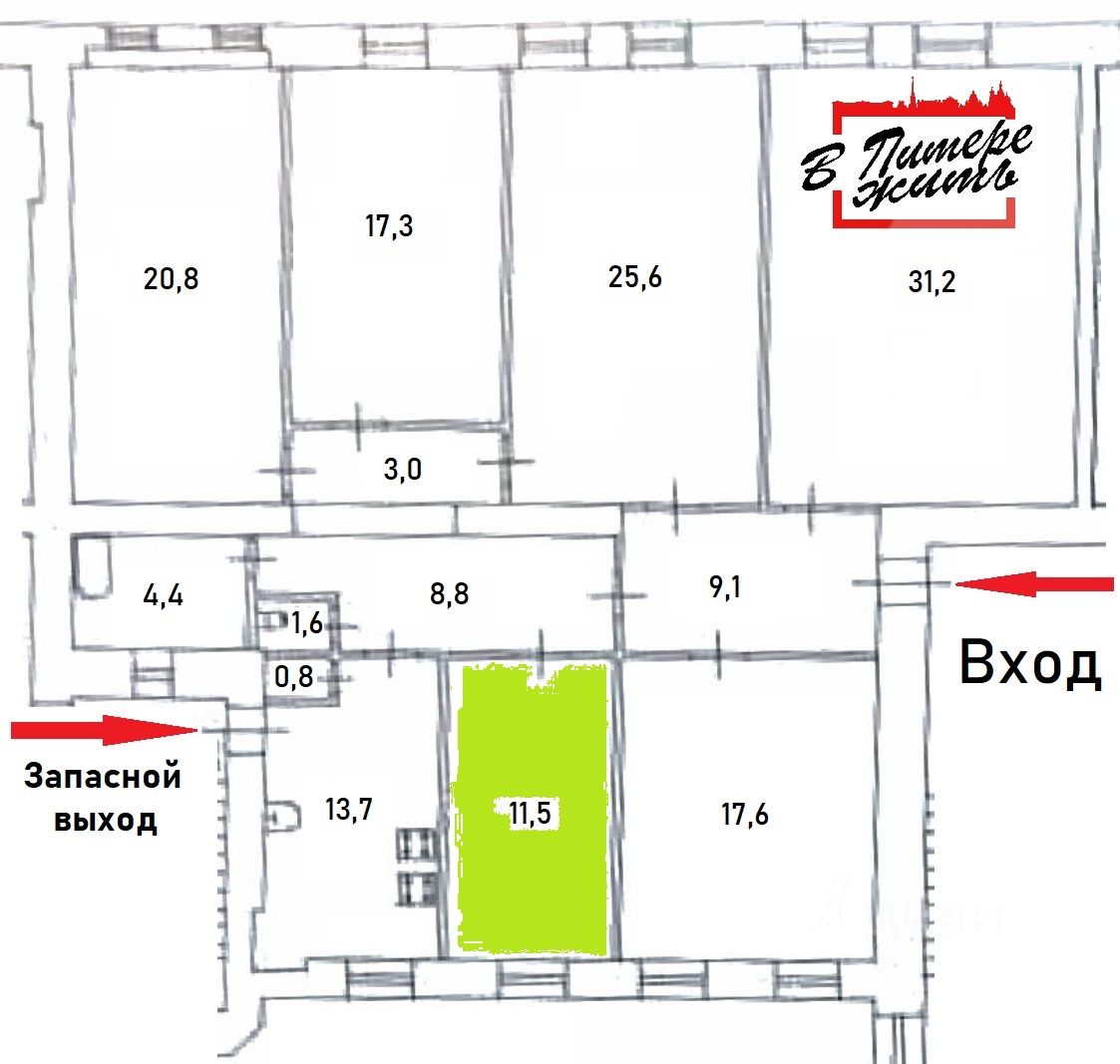Сдается на длительный срок комната в Петроградском р-не Санкт-Петербурга 11,5 кв.м.