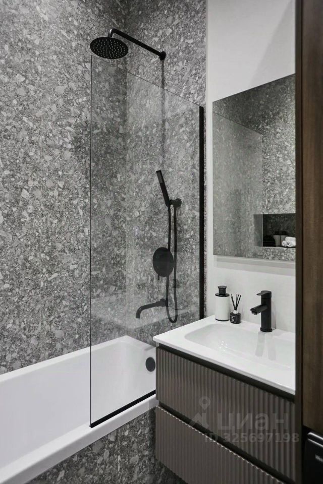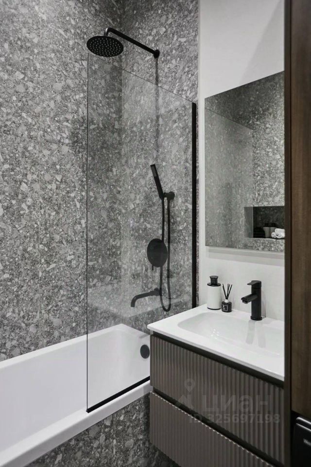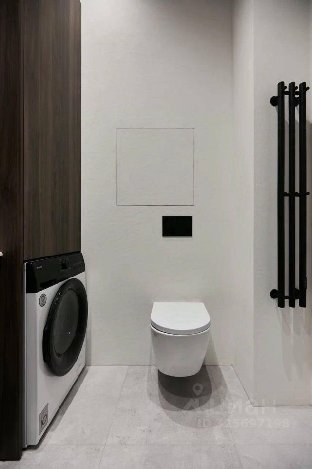 В санузле установлена система контроля протечки воды с управлением со смартфона, а так же стиральная машина с возможностью сушки белья.
