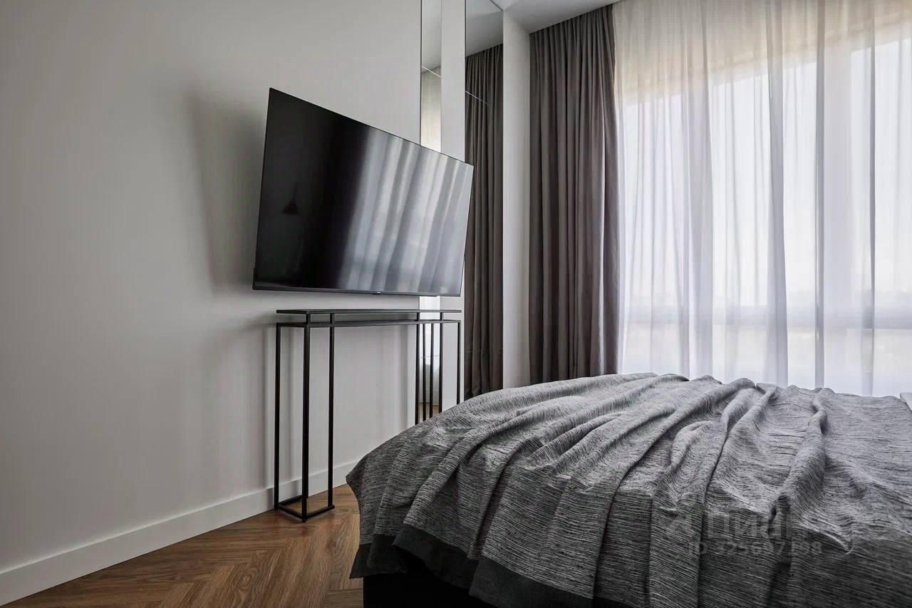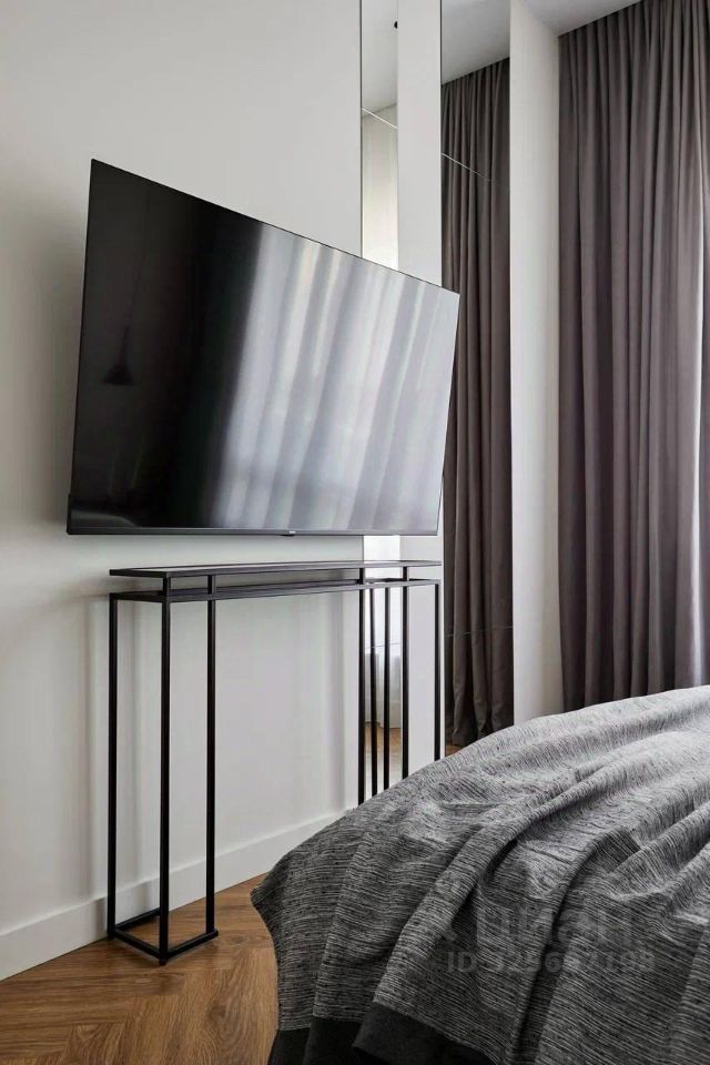 В зоне гостиной мягкий комфортный диван для отдыха и Google TV с диагональю 55.