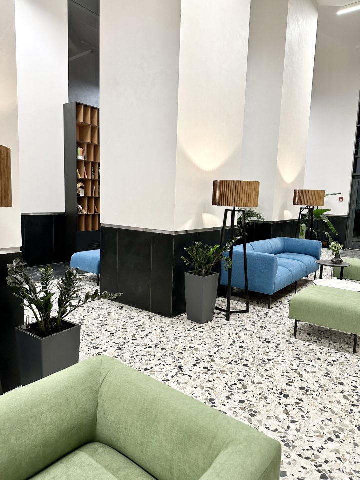 Центральное лобби с камином, библиотекой и массажными креслами для вас бесплатно.