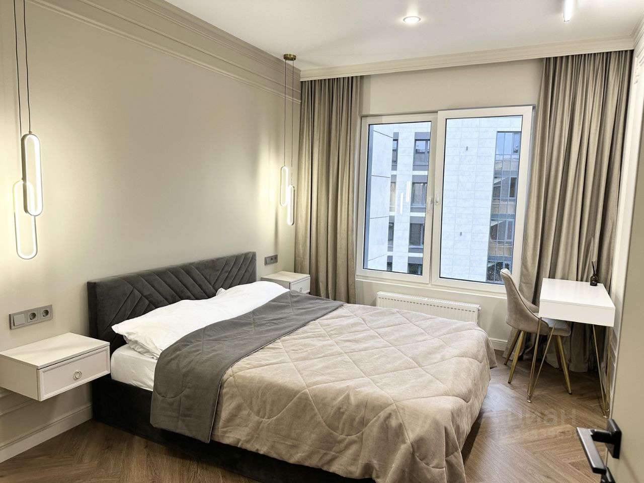 На берегу Финского залива в новом жилом комплексе бизнес-клacca bereg Курортный сдаются апартаменты с двумя спальнями и большой кухней-гостиной.