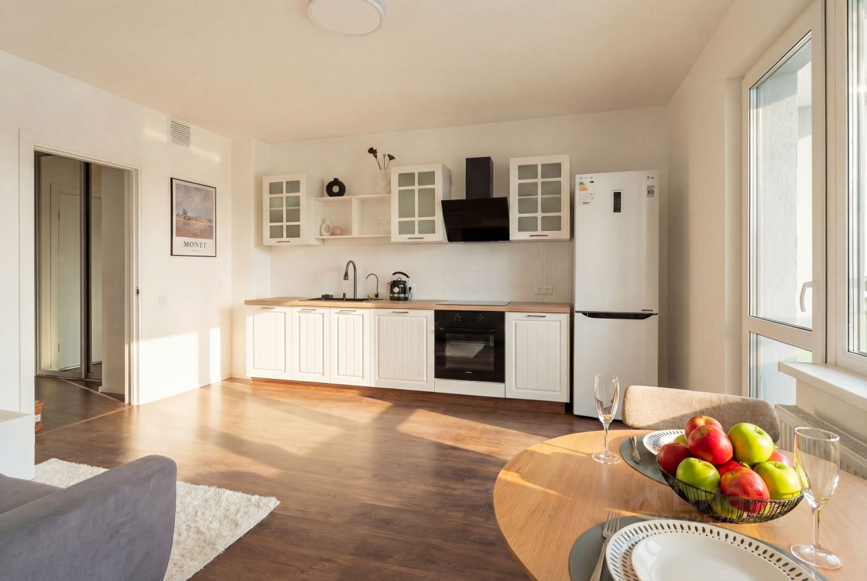 В квартире есть всё необходимое: - индукционная плита - холодильник - микроволновая печь - электрический чайник - посудомоечная машина - вытяжка - фен - утюг + гладильная доска - сушилка для белья - новый матрас IKEA