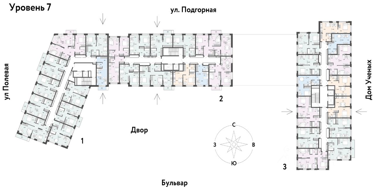 ПРЕИМУЩЕСТВА - Тематический бульвар объединяет дома и закрытые дворы квартала в единую экосистему: зелень, перголы для отдыха, детские и спортивные площадки. По вечерам бульвар преображается: освещение создаёт уютную атмосферу. - Новый детский сад рядом, который появится в 2026 году прямо в одном из корпусов комплекса. В нём выделено 150 мест для малышей. - Во дворах нет машин, шума, выхлопных газов и посторонних людей. Всё пространство разделено на зоны по интересам и возрастам. Для детей — игровые площадки из эко-материалов и мягкая защита от падений. Для взрослых — зоны отдыха, воркаут-площадки и тропинки для неспешных прогулок.
