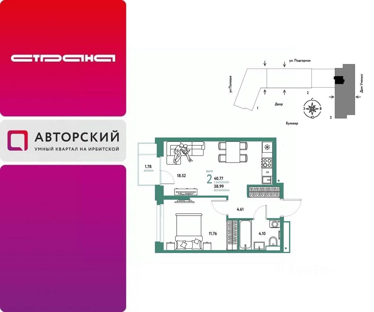Новая квартира в ЖК ''Авторский'' напрямую от федерального застройщика ''Страна Девелопмент''.