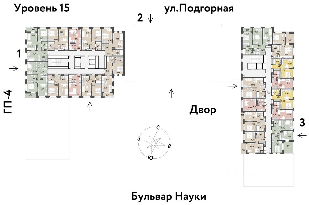 Преимущества •Тематический бульвар объединяет дома и закрытые дворы квартала в единую экосистему: зелень, перголы для отдыха, детские и спортивные площадки. По вечерам бульвар преображается: освещение создаёт уютную атмосферу. •Новый детский сад рядом, который появится в 2026 году прямо в одном из корпусов комплекса. В нём выделено 150 мест для малышей. •Во дворах нет машин, шума, выхлопных газов и посторонних людей. Всё пространство разделено на зоны по интересам и возрастам. Для детей — игровые площадки из эко-материалов и мягкая защита от падений. Для взрослых — зоны отдыха, воркаут-площадки и тропинки для неспешных прогулок.