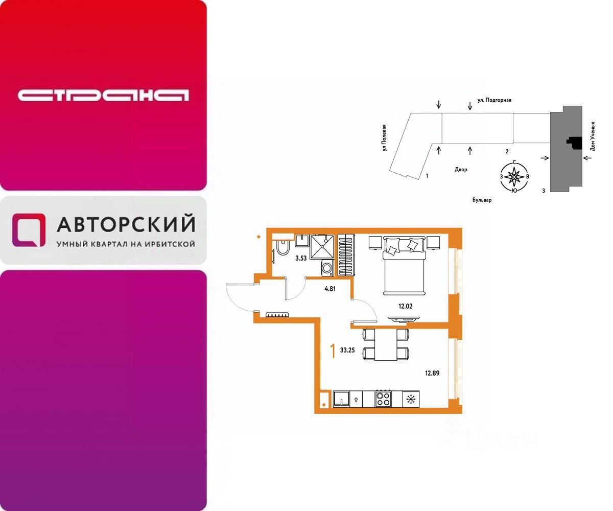 Продается 1комнатная квартира на 11 этаже от застройщика Страна Девелопмент. Площадь квартиры 33,25 кв. м.