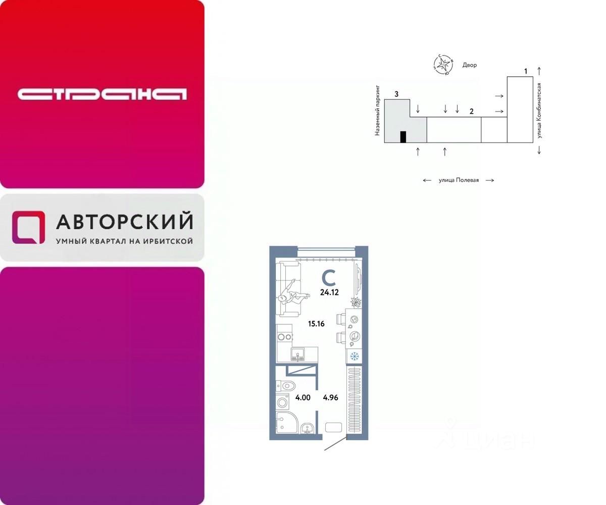 Продается 1комнатная квартира на 6 этаже от застройщика Страна Девелопмент. Площадь квартиры 24,12 кв. м.