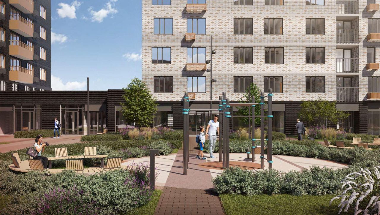 Преимущества •Тематический бульвар объединяет дома и закрытые дворы квартала в единую экосистему: зелень, перголы для отдыха, детские и спортивные площадки. По вечерам бульвар преображается: освещение создаёт уютную атмосферу. •Новый детский сад рядом, который появится в 2026 году прямо в одном из корпусов комплекса. В нём выделено 150 мест для малышей. •Во дворах нет машин, шума, выхлопных газов и посторонних людей. Всё пространство разделено на зоны по интересам и возрастам. Для детей — игровые площадки из эко-материалов и мягкая защита от падений. Для взрослых — зоны отдыха, воркаут-площадки и тропинки для неспешных прогулок.