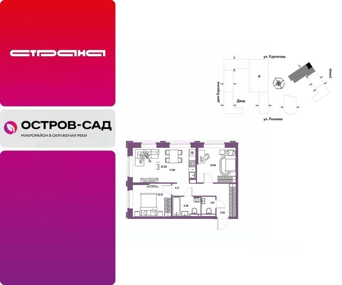 Продается 3комнатная квартира на 2 этаже от застройщика Страна Девелопмент. Площадь квартиры 55,28 кв. м.