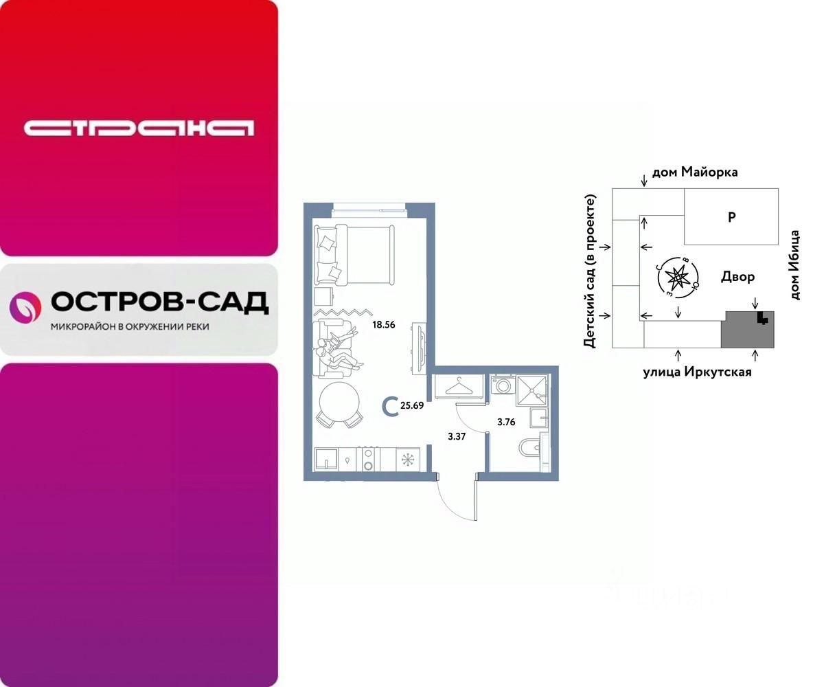 Продается квартира-студия на 8 этаже от застройщика Страна Девелопмент. Площадь квартиры 25,69 кв. м.
