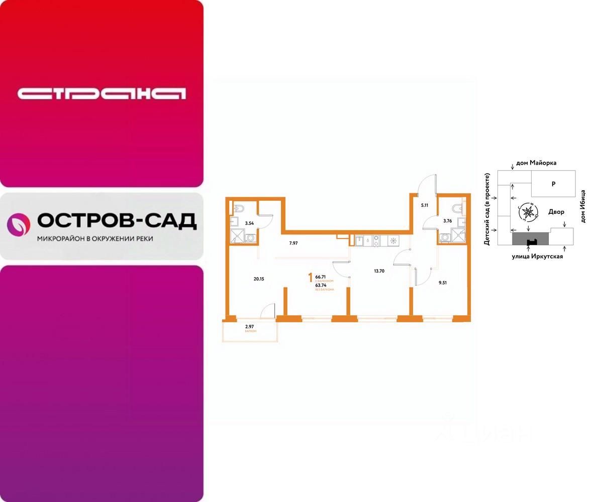 Продаётся квартира свободной планировки в строящемся доме (Дом Тенерифе (ГП-2Я)), срок сдачи: IV-кв. 2027, общей площадью 66.71 кв.м., на 14 этаже. Новый жилой комплекс ''Остров-сад'' от Специализированного застройщика ''Страна. Коммунистическая'' расположен по адресу: г. Тюмень, по ул. Ярославская.