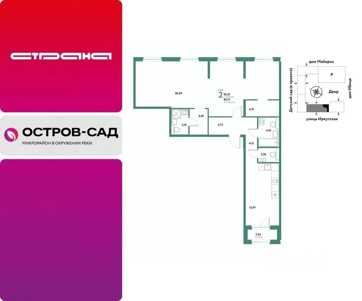 Продаётся квартира свободной планировки в строящемся доме (Дом Тенерифе (ГП-2Я)), срок сдачи: IV-кв. 2027, общей площадью 95.51 кв.м., на 14 этаже. Новый жилой комплекс ''Остров-сад'' от Специализированного застройщика ''Страна. Коммунистическая'' расположен по адресу: г. Тюмень, по ул. Ярославская.