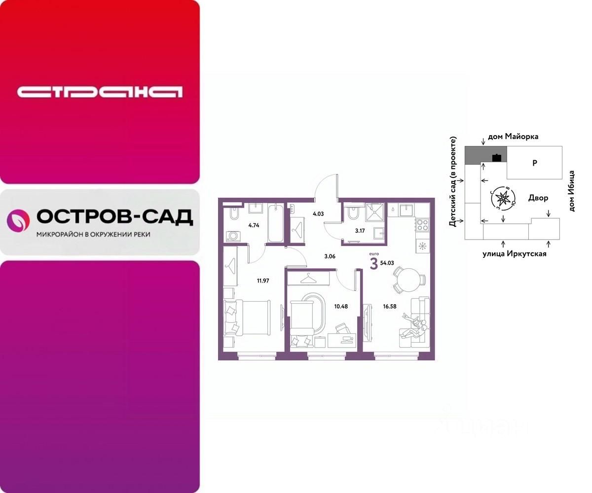 Продаётся 3-комнатная квартира в строящемся доме (Дом Тенерифе (ГП-2Я)), срок сдачи: IV-кв. 2027, общей площадью 54.03 кв.м., на 17 этаже. Новый жилой комплекс ''Остров-сад'' от Специализированного застройщика ''Страна. Коммунистическая'' расположен по адресу: г. Тюмень, по ул. Ярославская.