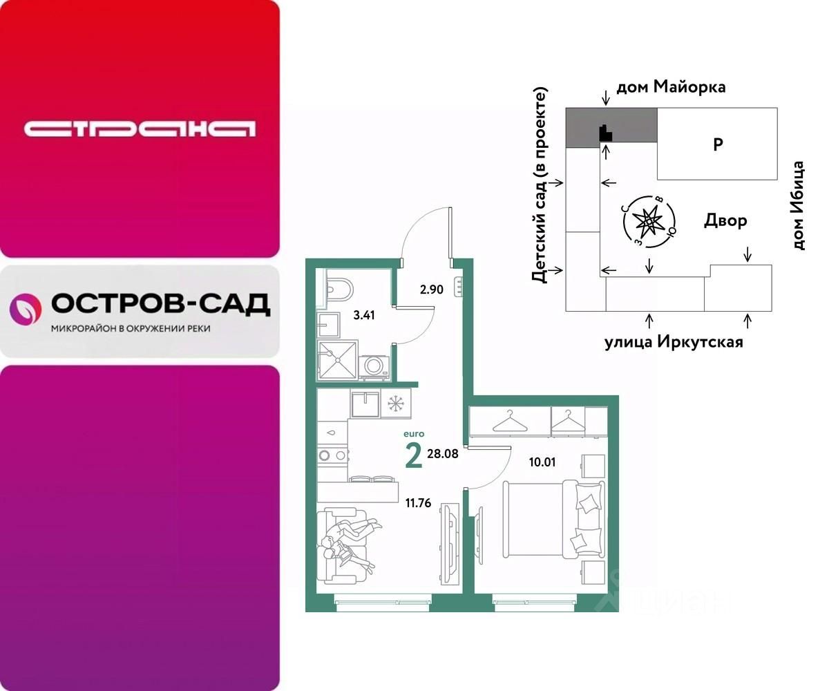 Продаётся 2-комнатная квартира в строящемся доме (Дом Тенерифе (ГП-2Я)), срок сдачи: IV-кв. 2027, общей площадью 28.08 кв.м., на 13 этаже. Новый жилой комплекс ''Остров-сад'' от Специализированного застройщика ''Страна. Коммунистическая'' расположен по адресу: г. Тюмень, по ул. Ярославская.