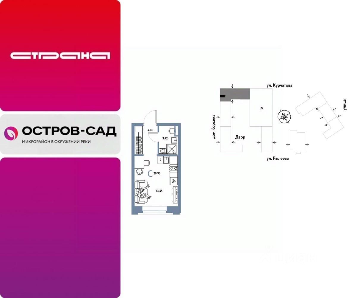 Продается 1комнатная квартира на 15 этаже от застройщика Страна Девелопмент. Площадь квартиры 20,93 кв. м.