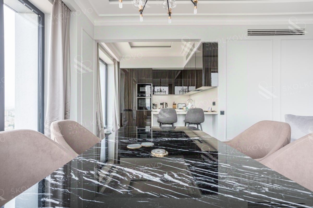 id: 551015 Продается видовая квартира с 2 спальнями в премиум-комплексе Prime Park. Мы рады представить вам уникальную возможность стать владельцем стильной и комфортабельной квартиры общей площадью 113 м² на 32-м этаже корпуса R4 элитного жилого комплекса Prime Park. Эта квартира с захватывающими видами на Ходынский бульвар и ''Триумф-Палас'' выполнена в авторском дизайнерском ремонте в стиле Classic dark и оснащена премиальными материалами, которые создают атмосферу роскоши и уюта.