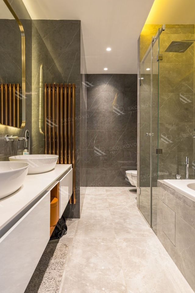 Кухня-гостиная — идеальное место для семейных встреч и приема гостей. Мастер-спальня с собственной гардеробной и ванной комнатой, обеспечивающая необходимую приватность и комфорт. Вторая спальня с коллегой санузлом — идеальна для гостей или семьи. Гостевой санузел, гардеробная и кладовая. Прихожая, создающая первое впечатление о вашем доме. Панорамное остекление наполняет квартиру естественным светом, подчеркивая великолепие интерьера.
