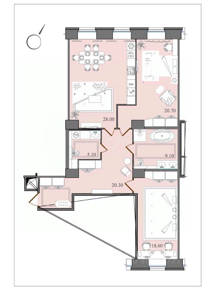Квартира прекрасно спланирована. Просторная кухня-гостиная (28 м2) и 2 спальни, 2 сан/узла. Высокие потолки и хороший метраж комнат помогут воплотить любой интерьер. К квартире прилагается дизайн-проект под ключ. В ближайший год вы уже можете заехать в свое новое стильное и уютное семейное гнездо.