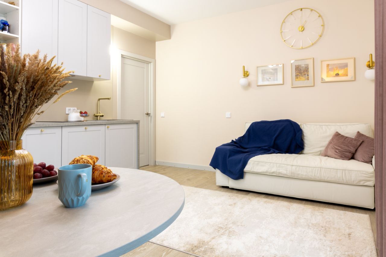 В квартире есть все необходимое для проживания: постельное белье, кухоные принадлежности, полотенца