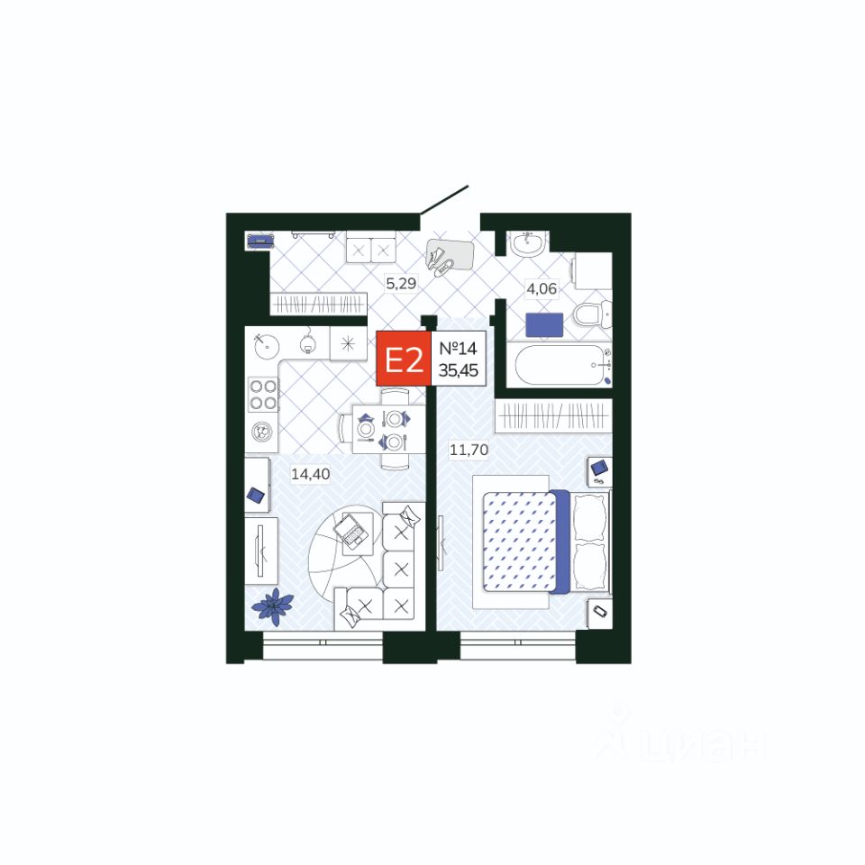 Общая площадь35,45 м2