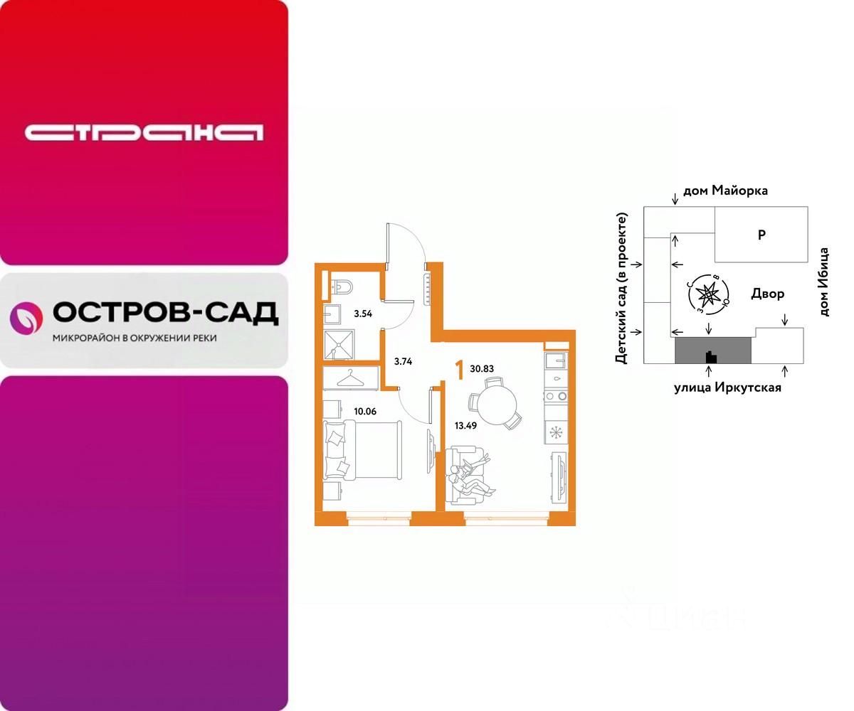 Продаётся 1-комнатная квартира в строящемся доме (Дом Тенерифе (ГП-2Я)), срок сдачи: IV-кв. 2027, общей площадью 30.83 кв.м., на 7 этаже. Новый жилой комплекс ''Остров-сад'' от Специализированного застройщика ''Страна. Коммунистическая'' расположен по адресу: г. Тюмень, по ул. Ярославская.