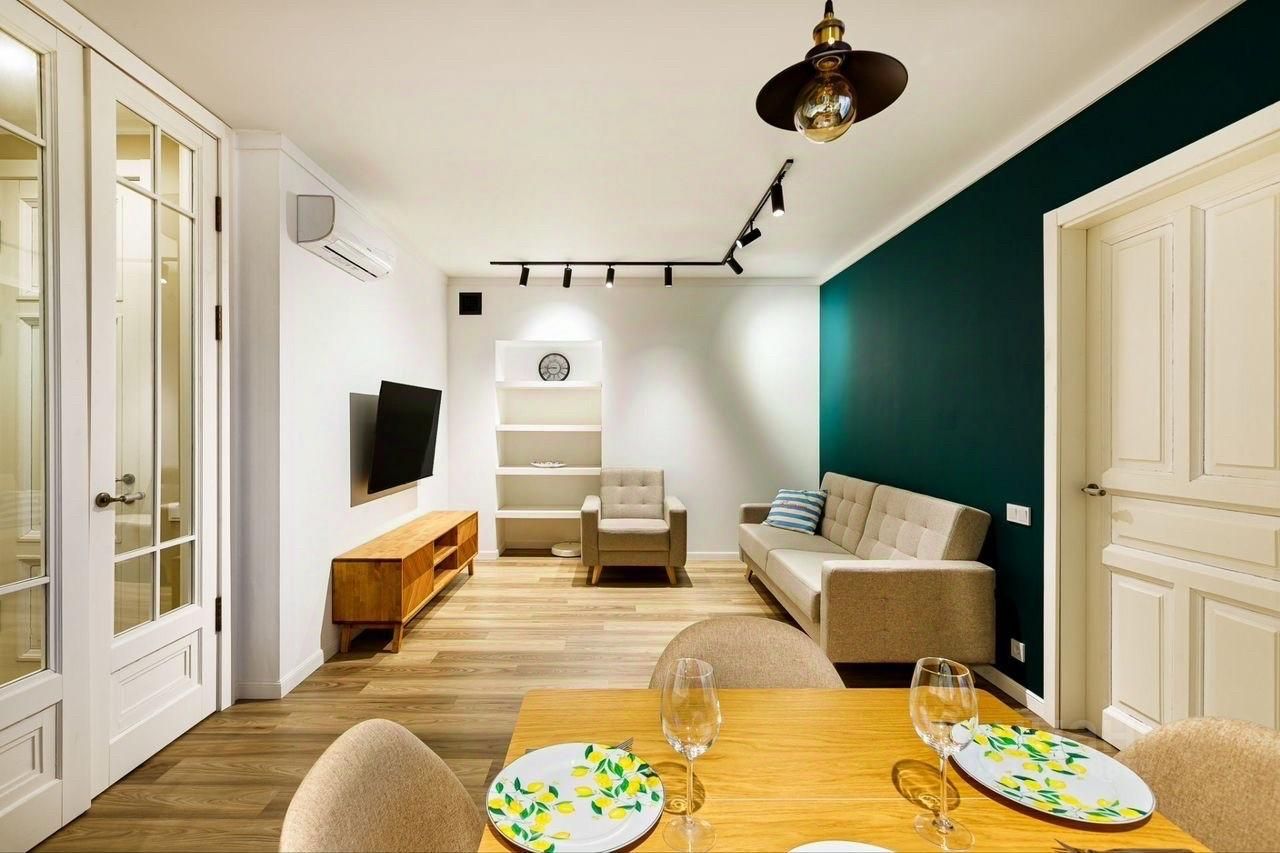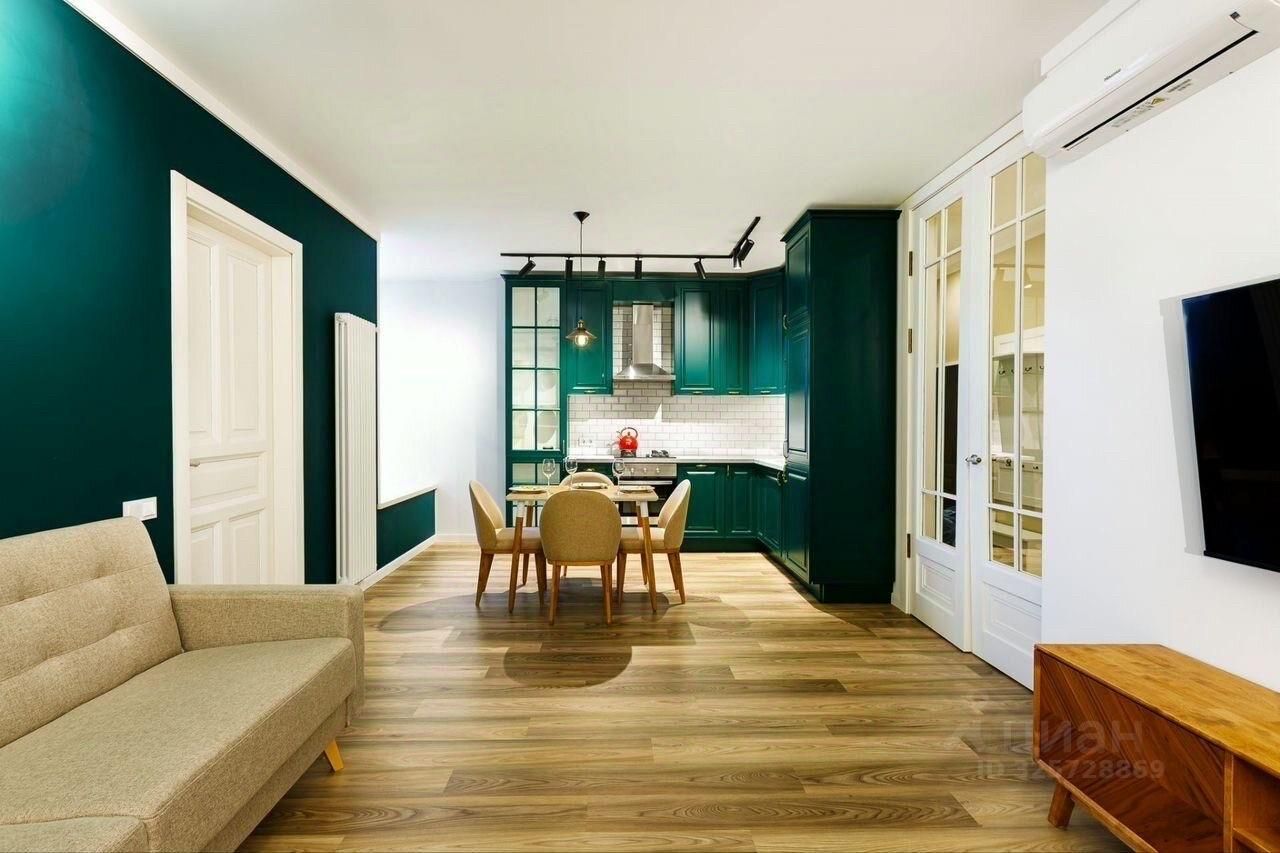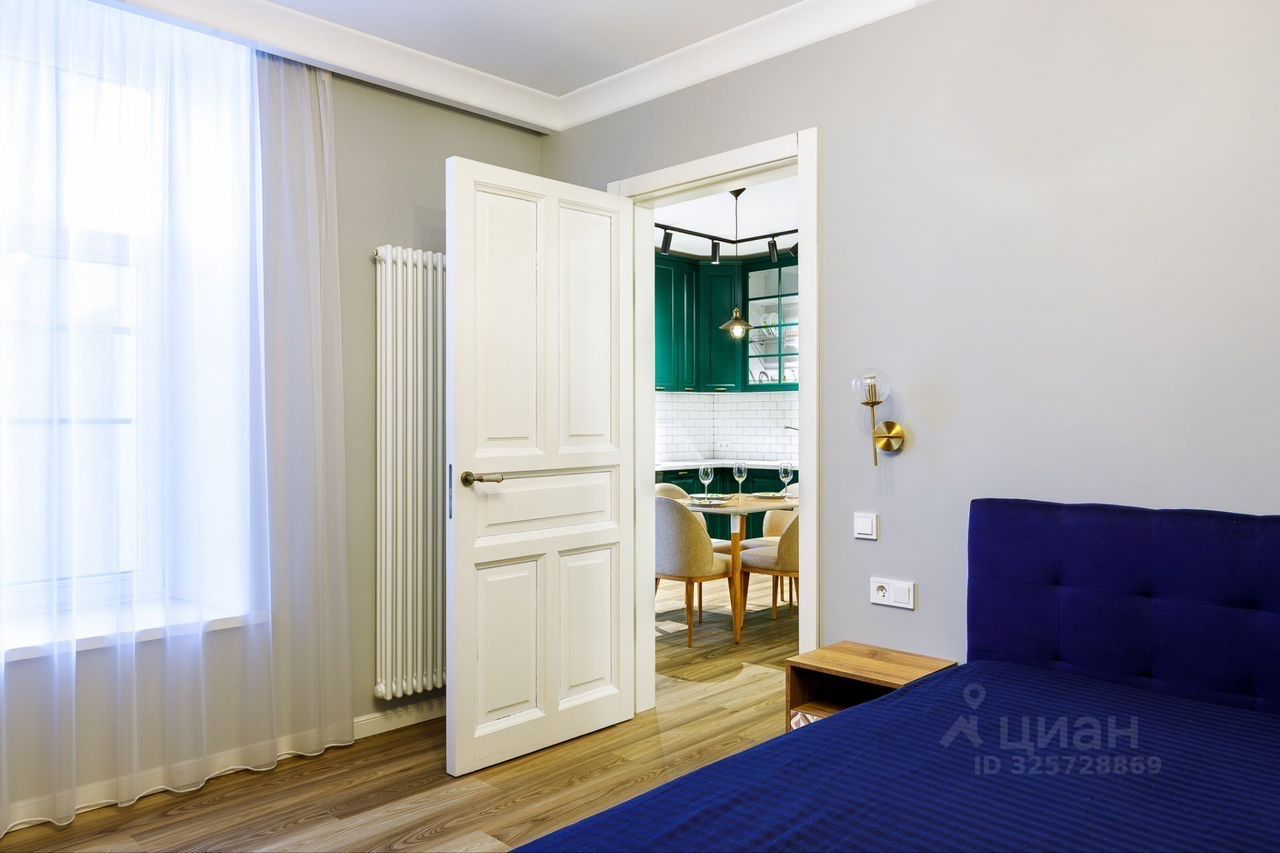 Предлагается в аренду стильная двухкомнатная квартира в историческом кирпичном доме 1906 года постройки. Квартира расположена на 3-м этаже 7-этажного здания, всего в 8 минутах пешком от станции метро ''Садовая''. Общая площадь квартиры составляет 53 кв. м, жилая площадь — 17 кв. м, а просторная кухня занимает 28 кв. м.