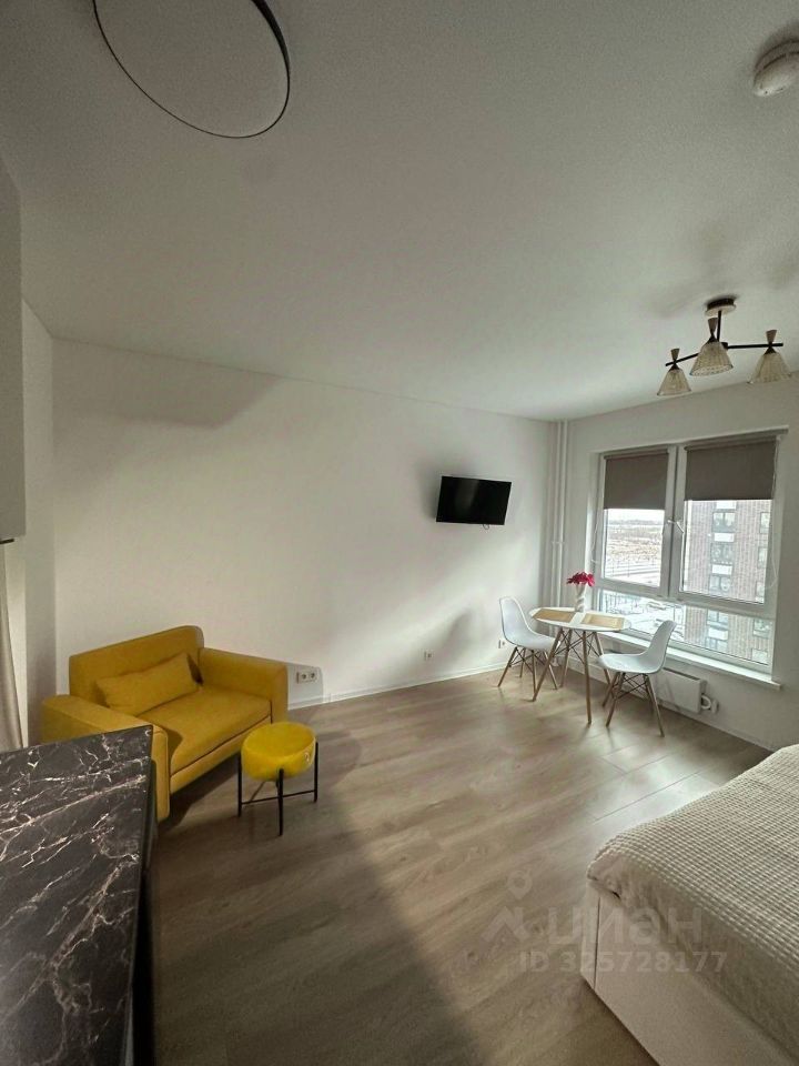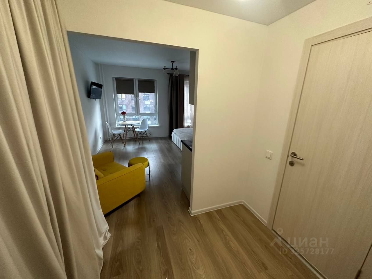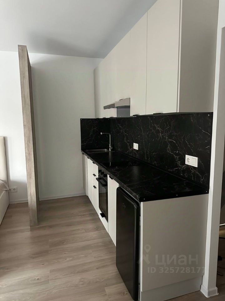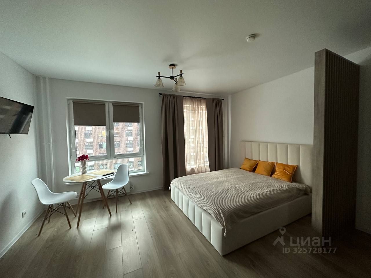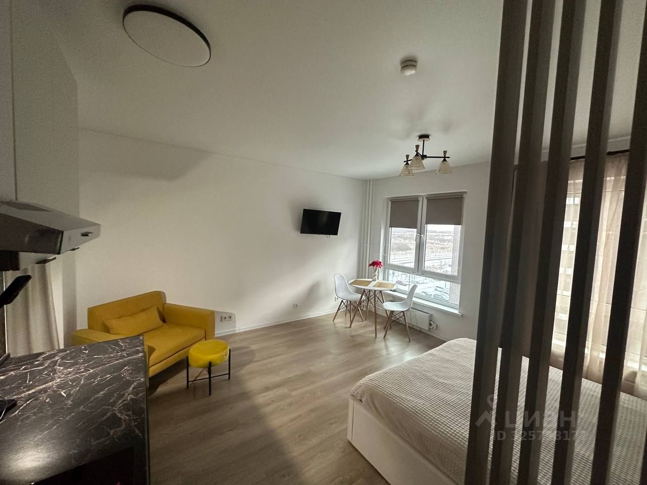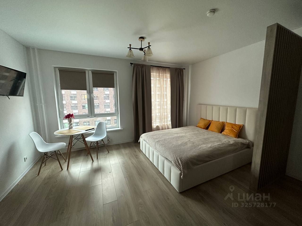 Уютная студия с хорошей кухней и всей необходимой техникой, включая посудомоечную машину. Ремонт делала для себя, хорошая просторная кровать, отделенная декоративной реечной панелью от кухни, раскладное удобное кресло (можно использовать для ребенка), телевизор, кухонный стол у окна с приятным видом, большой шкаф и достаточно места для хранения вещей.