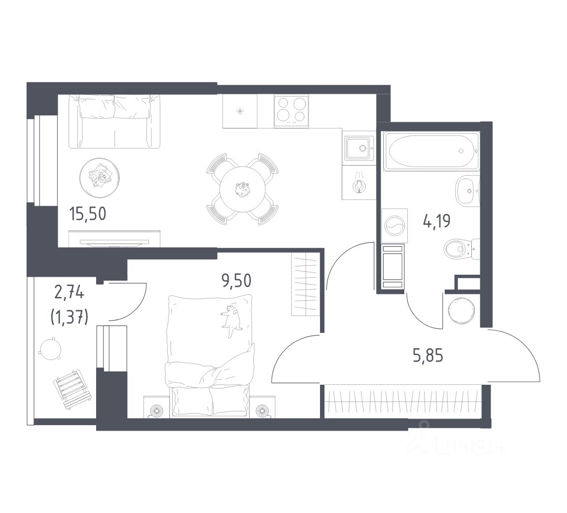 продам 1-к, Живи в Рыбацком ЖК, 411 075 597 ₽