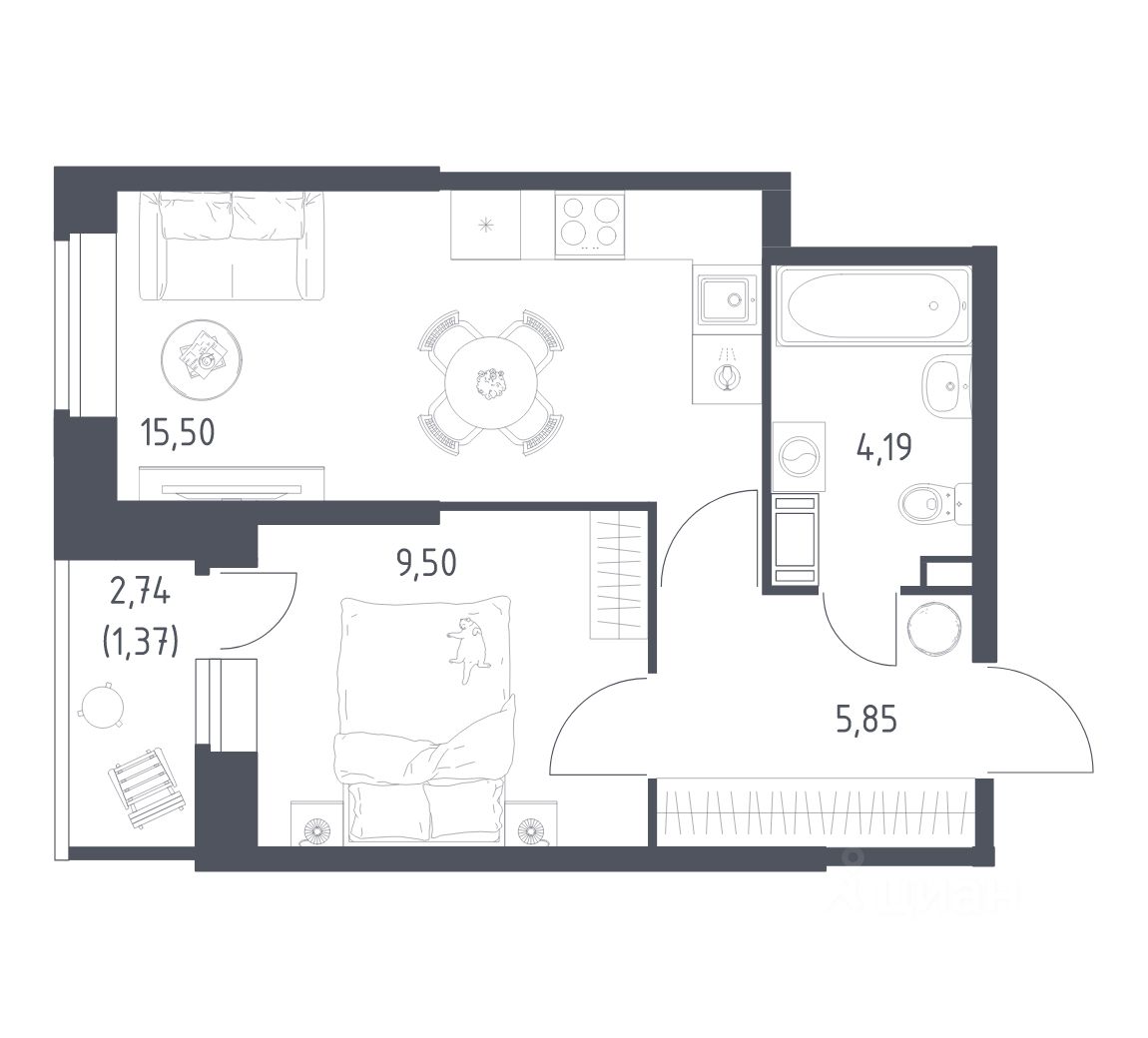 продам 1-к, Живи в Рыбацком ЖК, 411 505 159 ₽