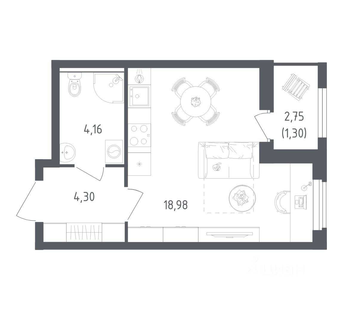 Общая площадь28,74 м2
