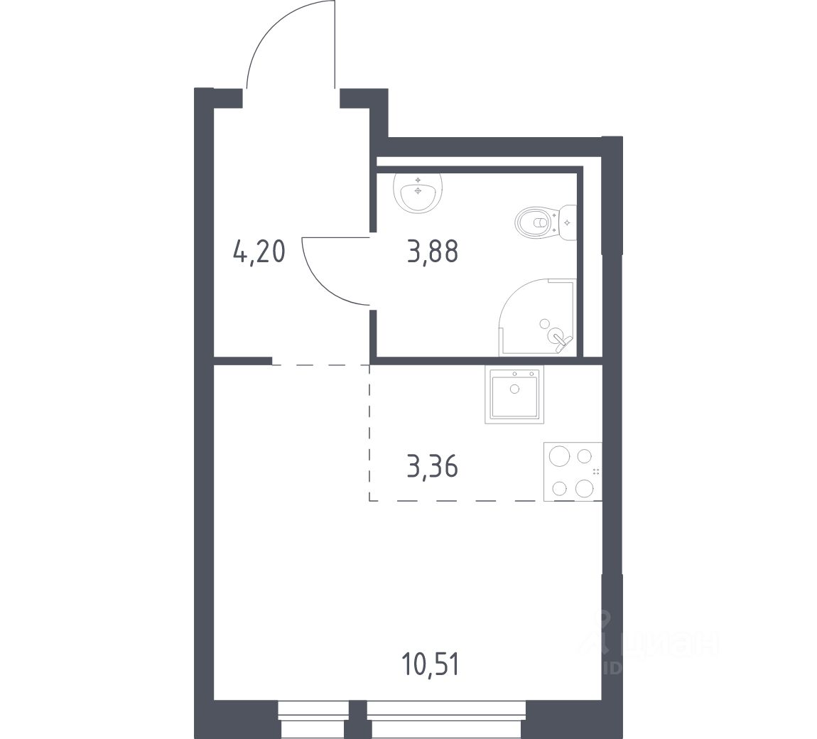 В продаже студия в корпусе 1.1 ЖК 'Невская Долина'. Квартира располагается на 9 этаже, общая площадь 21.95 м2.