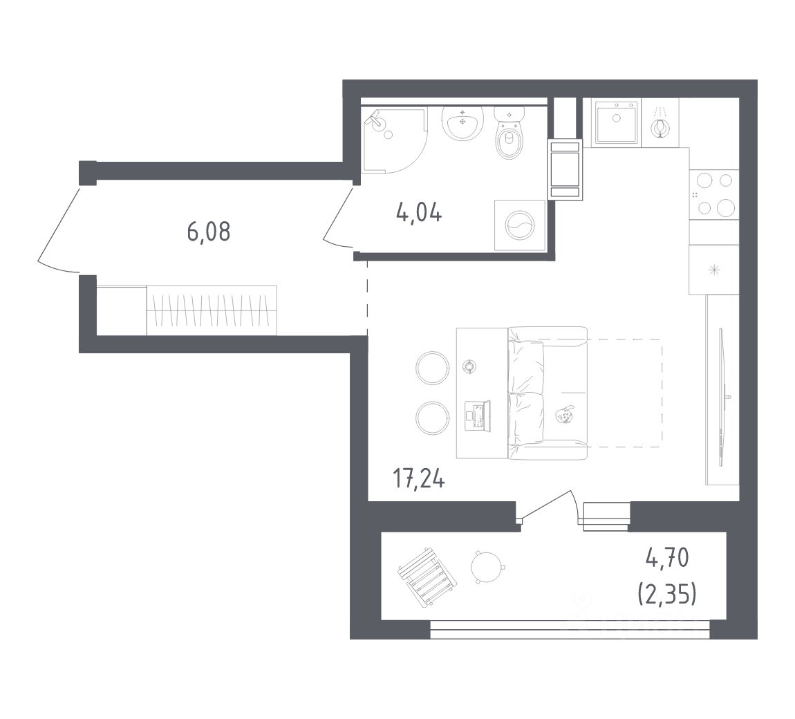 Общая площадь29,71 м2