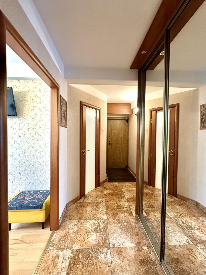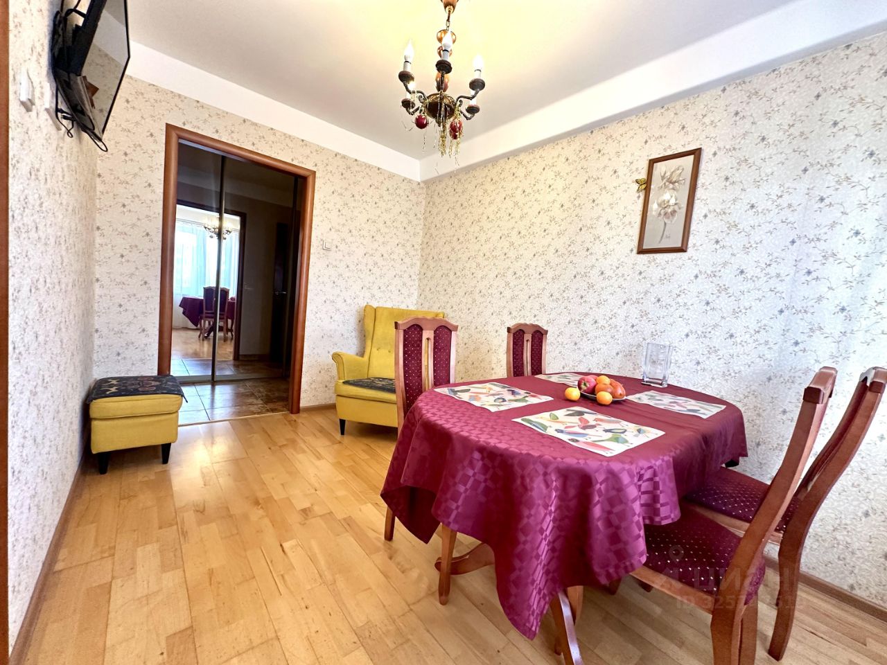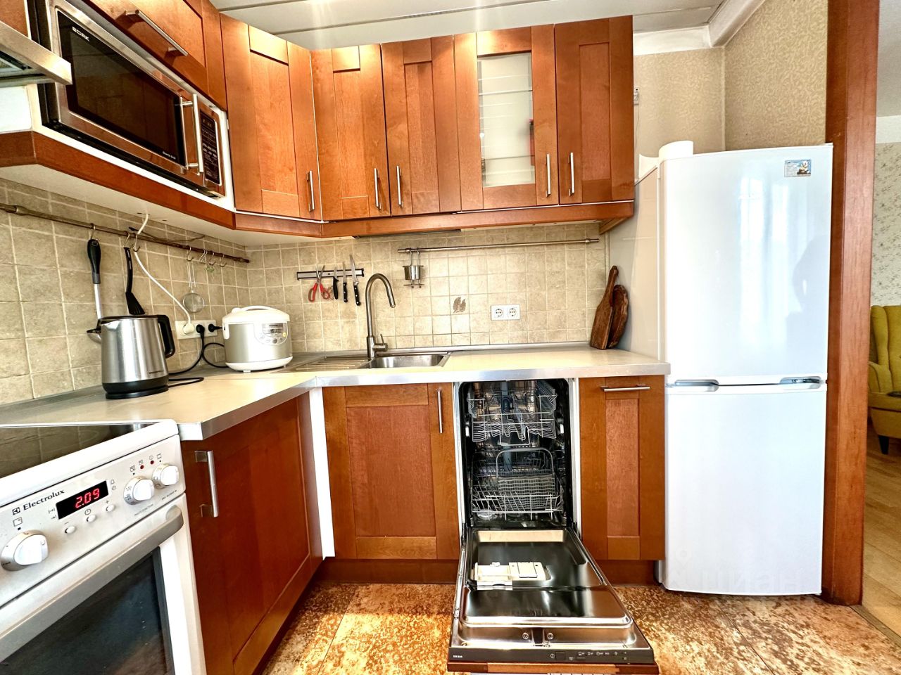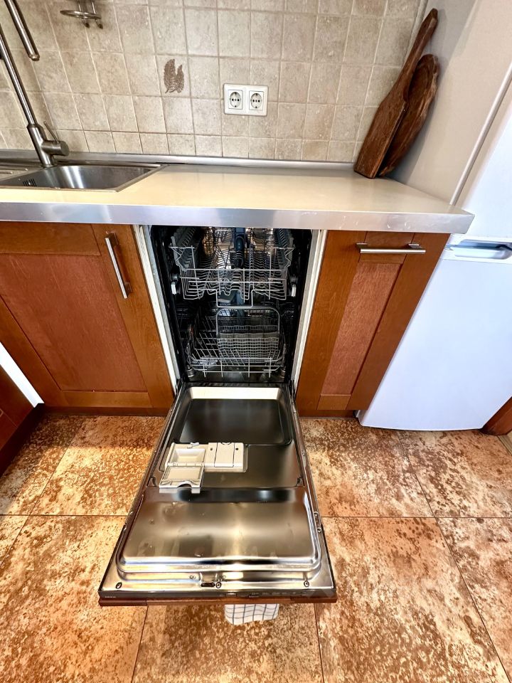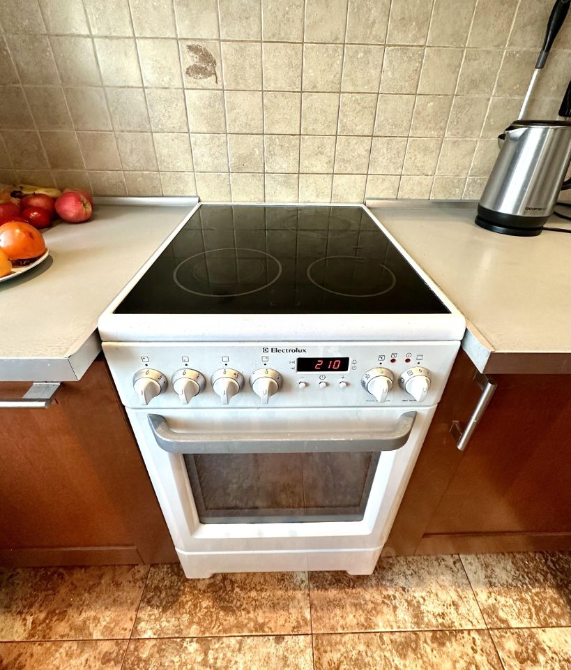 Есть все нужно для комфортного проживания кухонный гарнитур плитой вытяжкой, посудомоечной машиной большой стол в гостиной для совместных посиделок с родными и друзьями, телевизор, двухкамерный холодильник, стиральная машина, много мест для хранения одежды, обуви и бытовых предметов.