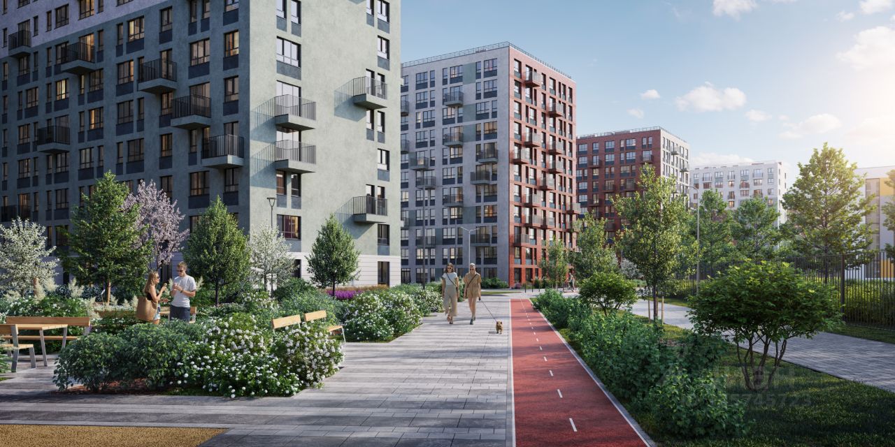 Благоустройство и архитектура Дворы в квартале — приватные, без машин, с зелеными островками и зонами для отдыха. Вокруг школы проложен зеленый бульвар с велодорожкой. Дома высотой 11 этажей отличаются стильным фасадом в теплых оттенках с французскими балконами. В парадных — светлые лобби в европейском стиле с безбарьерной средой.
