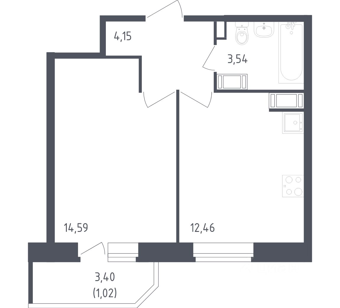 продам 1-к, Живи в Рыбацком ЖК, 59 563 619 ₽