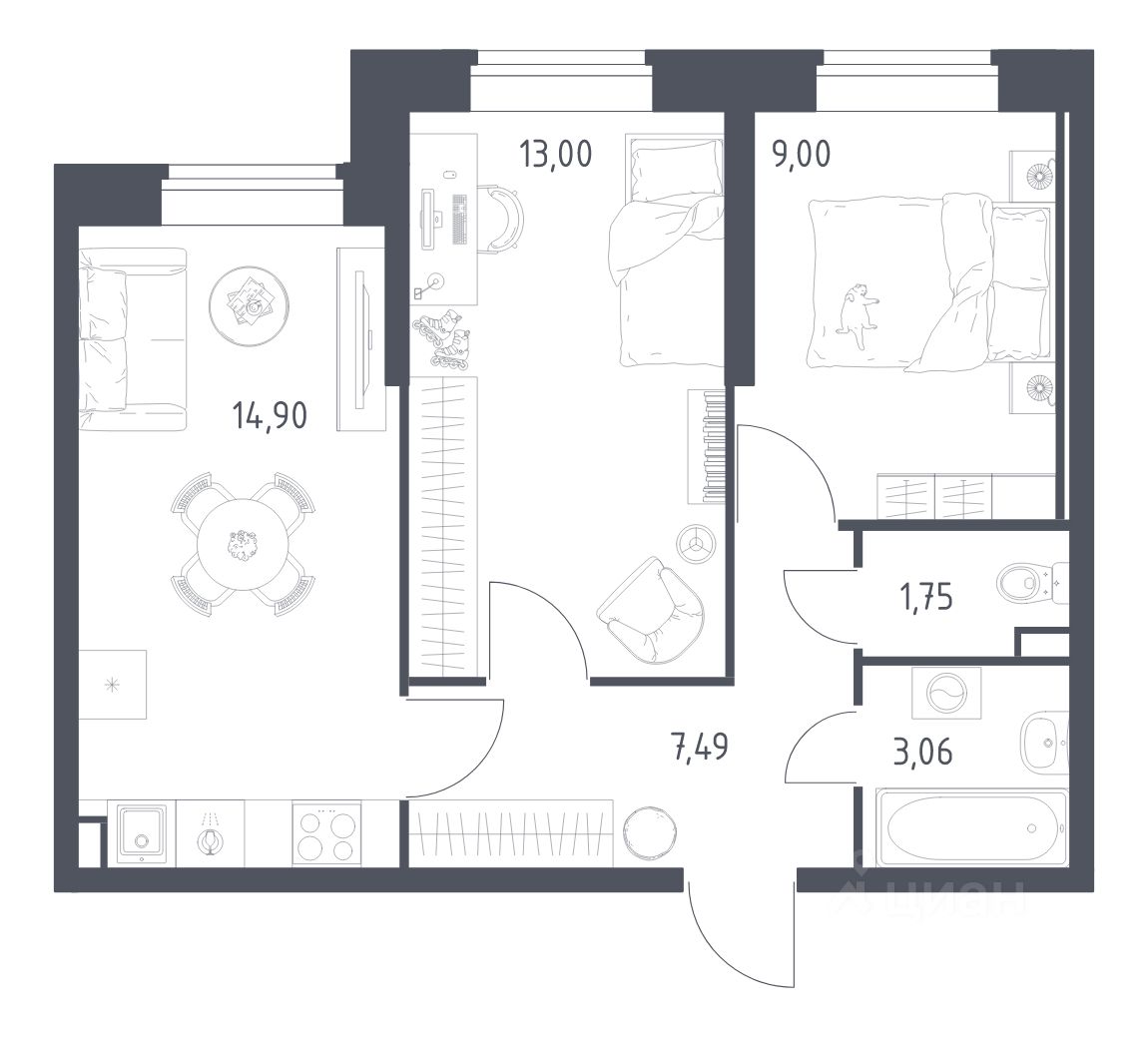 продам 2-к, Живи в Рыбацком ЖК, 414 188 562 ₽