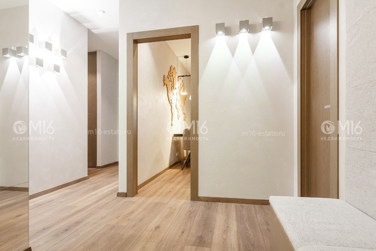 Выполнена дизайнерская отделка в светлых оттенках с использованием качественных материалов и встроенной техники — есть все необходимое для жизни
