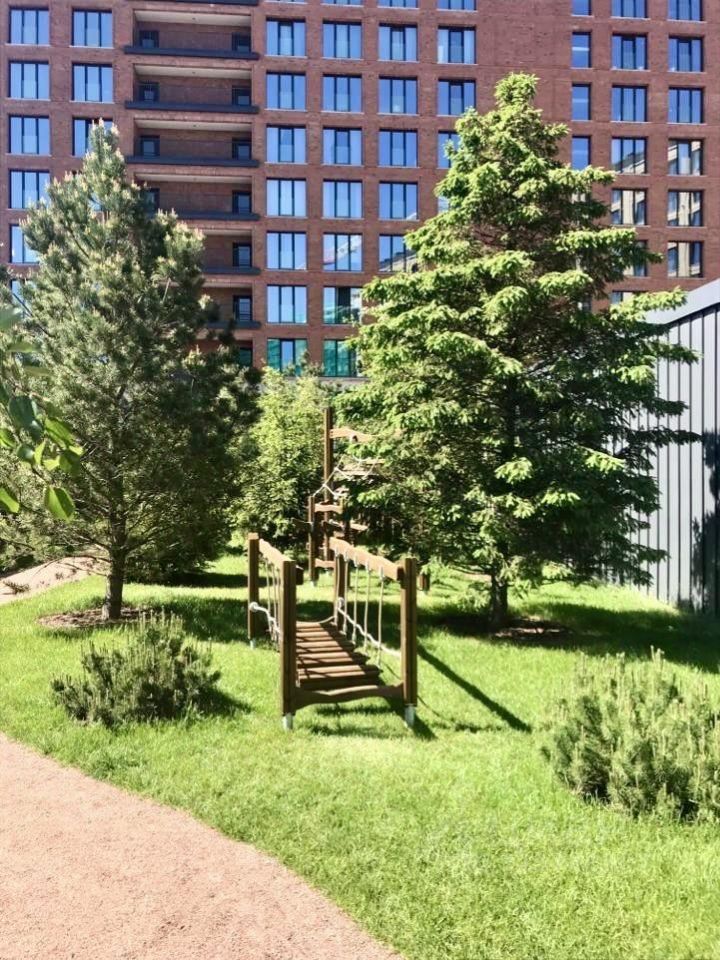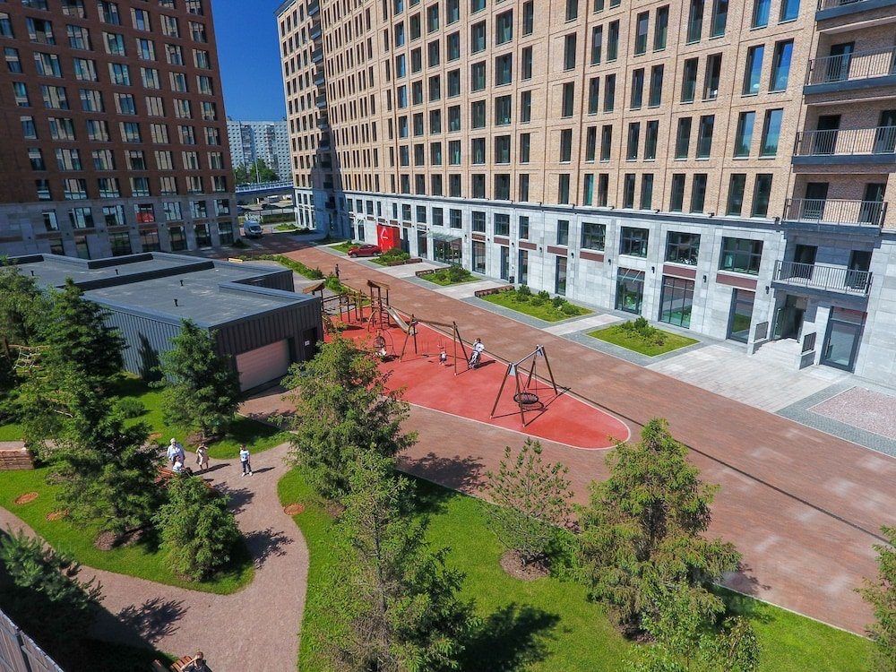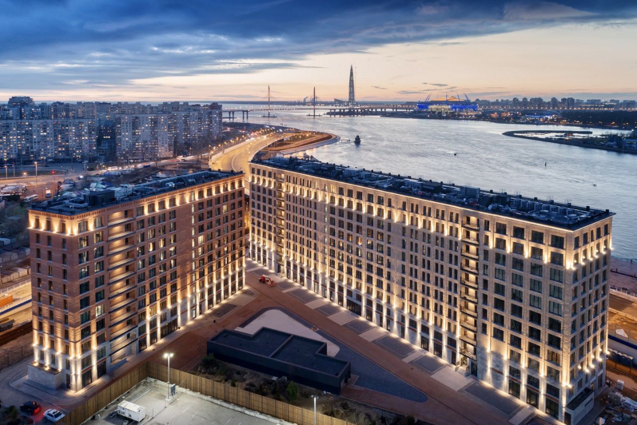 Комплекс стоит на набережной Макарова на берегу реки Малая Нева, по которой можно прогуливаться вечерами. Вид из окон апартамента частично выходит на стадион Санкт-Петербург и Лахта центр. В пешей доступности находится парк Декабристов.