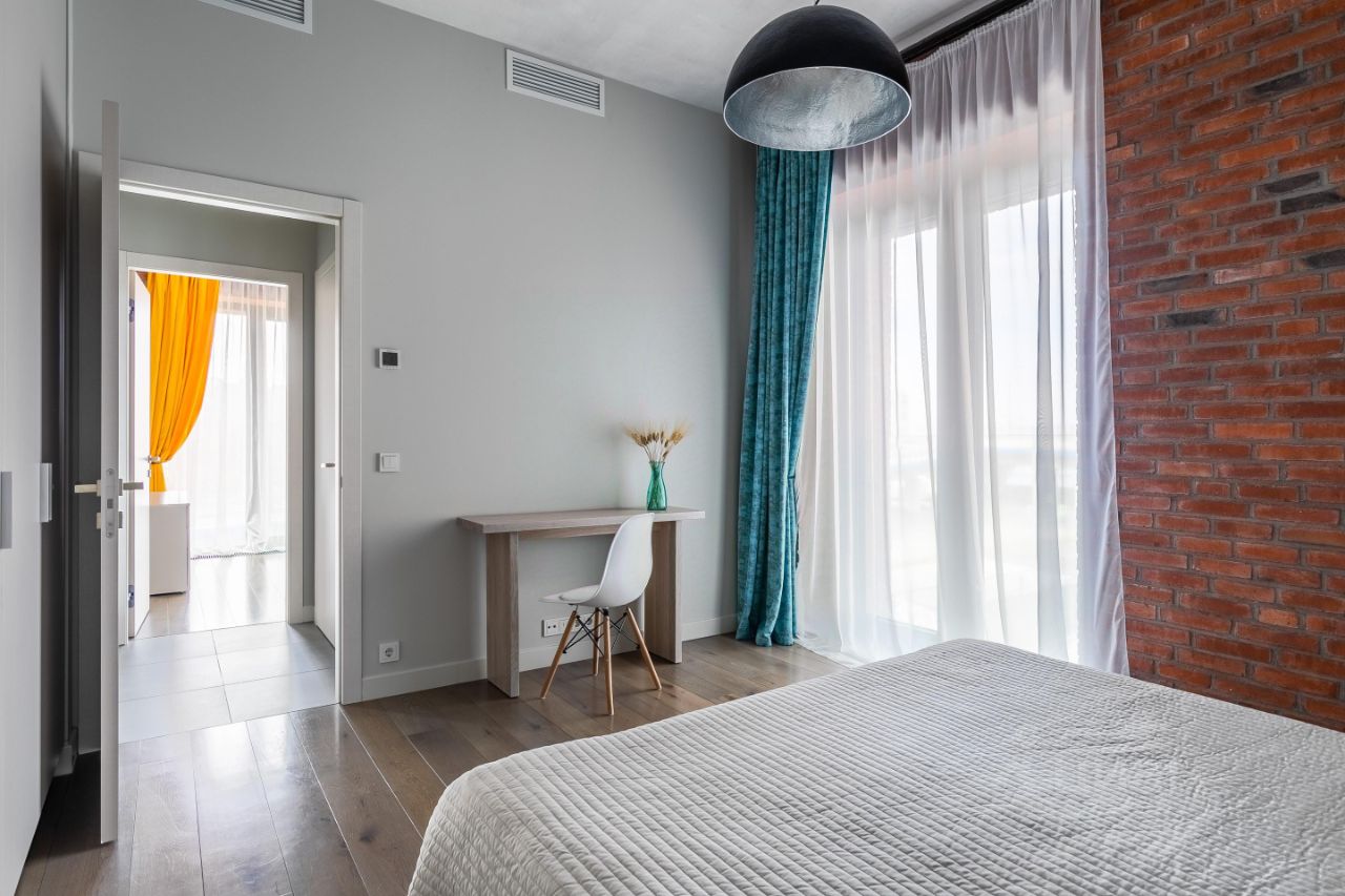 Предлагаются в аренду апартаменты в доме комфорт класса Docklands в стиле лофт. Апартаменты европейской планировки с двумя комнатами, кухней-гостиной и гардеробной. Полностью оснащены всем необходимым и оборудованием и мебелью. Бытовая техника: стиральная машина, посудомоечная машина, духовой шкаф, плита, вытяжка, фирмы BOSCH. На кухне установлен фильтр фирмы Аквафор Кристал ЭКО, что означает наличие питьевой воды круглосуточно. Мебель в апартаментах дизайнерская от фирм Meltzer и Hard de Core, выполнена из натурального дерева, экологически чистых материалов. Для удобства размещения всех вещей в апартаментах есть гардеробная комната. В ванной комнате находится: душ, гигиенический душ, раковина, туалет, вся сантехника фирмы Vitra.
