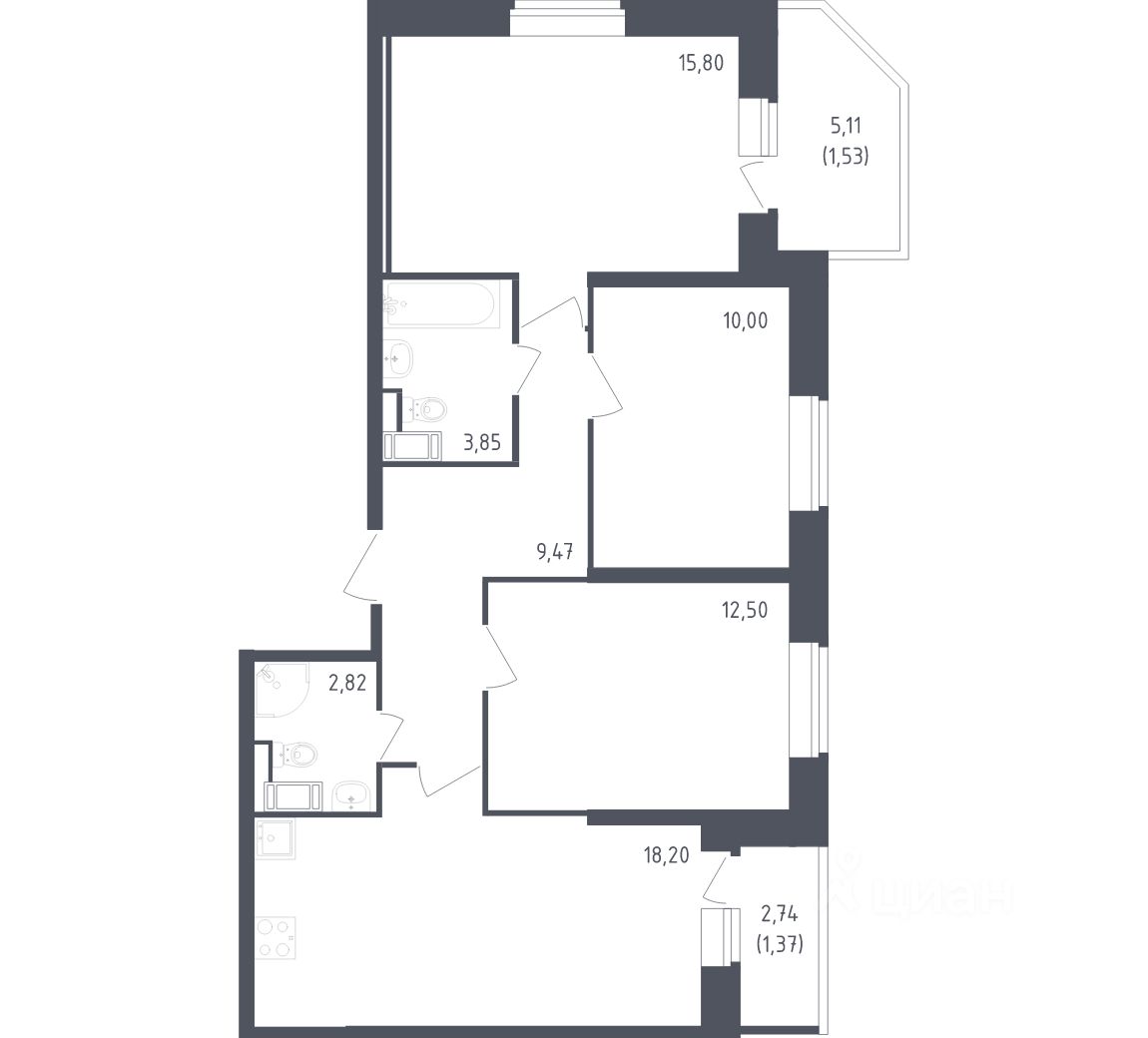 продам 3-к, Живи в Рыбацком ЖК, 519 244 444 ₽