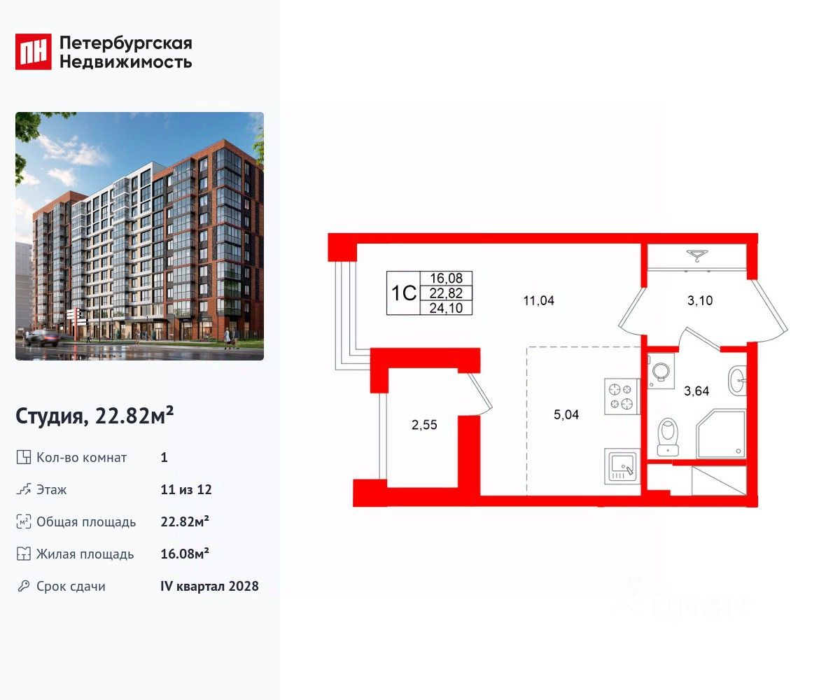 Удобная, классическая, функциональная европланировка, вместительная прихожая 3.1 м². Общая площадь студии - 22.82 м², жилая 16.08 м², высота потолка 2.77 м.