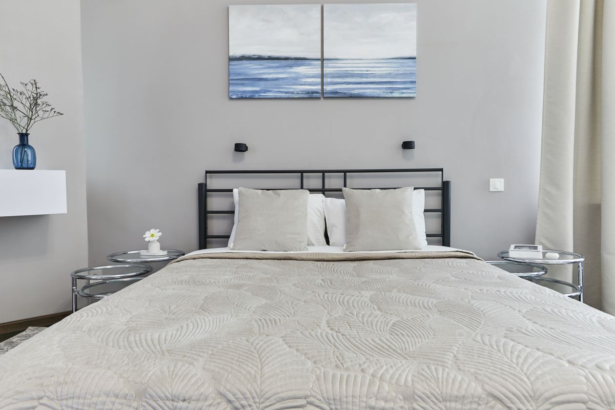 Квартира полностью укомплектована для проживания, есть вся бытовая мебель и техника