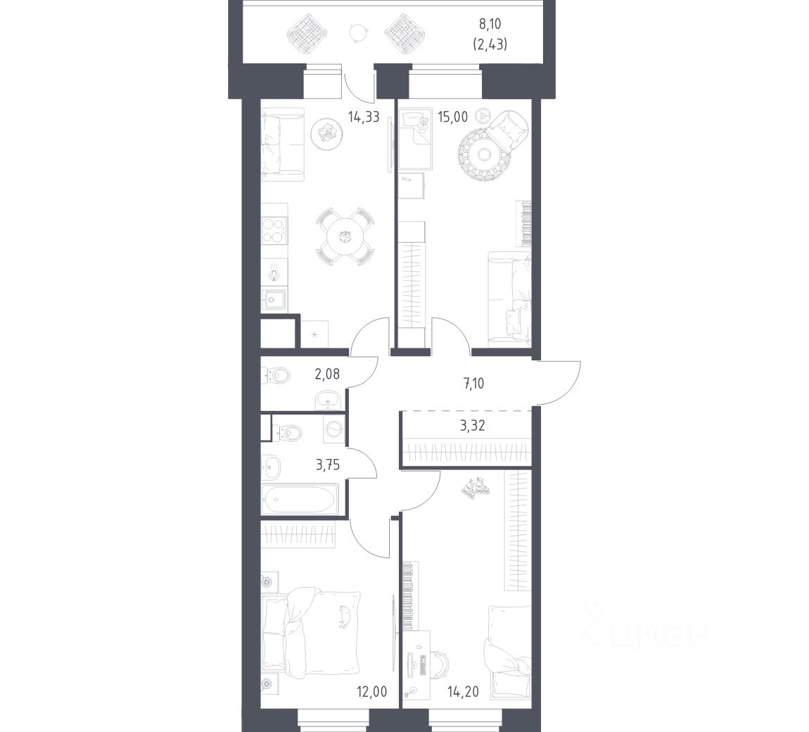 продам 3-к, Живи в Рыбацком ЖК, 420 223 444 ₽