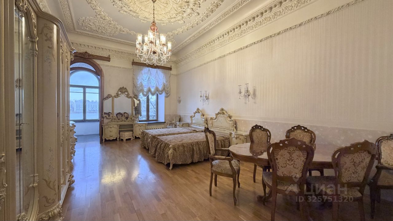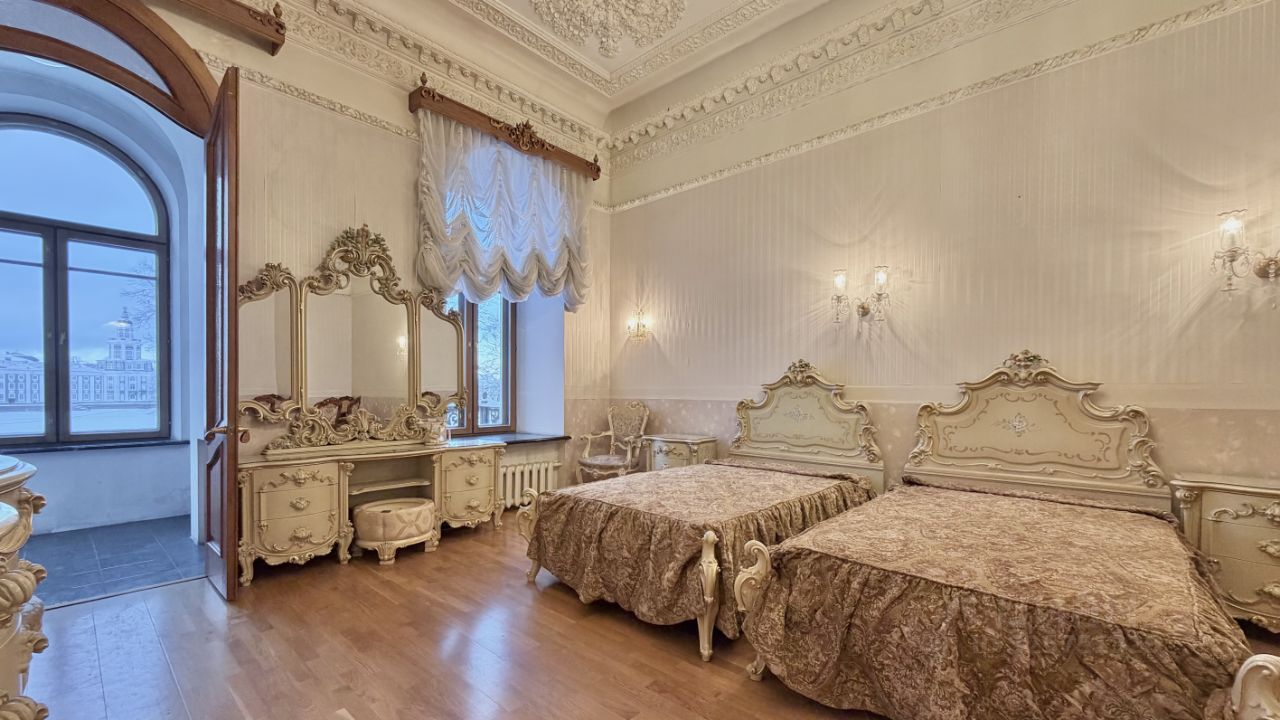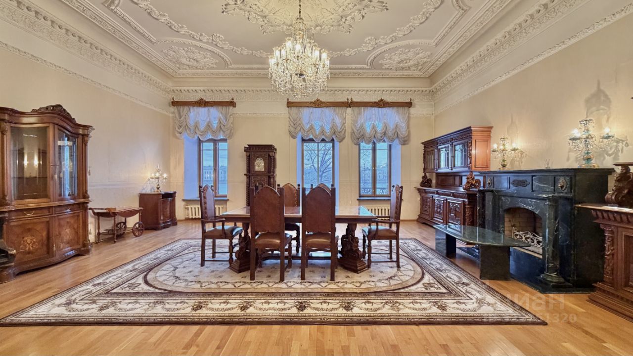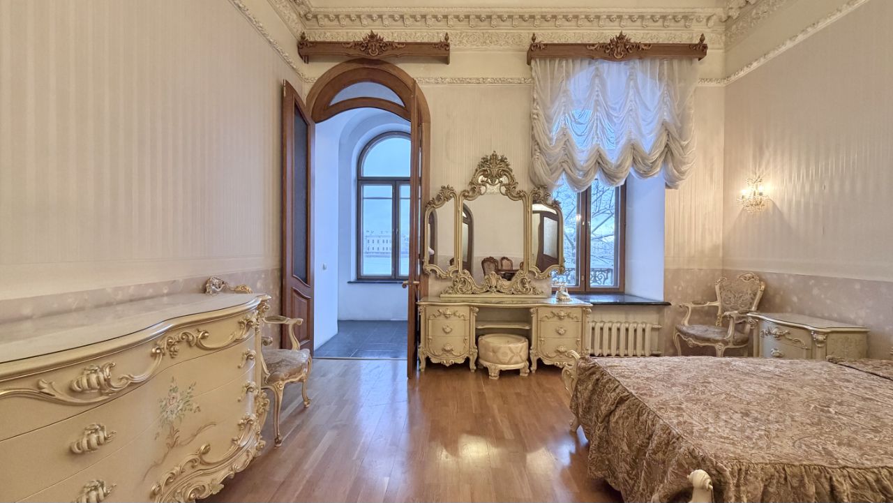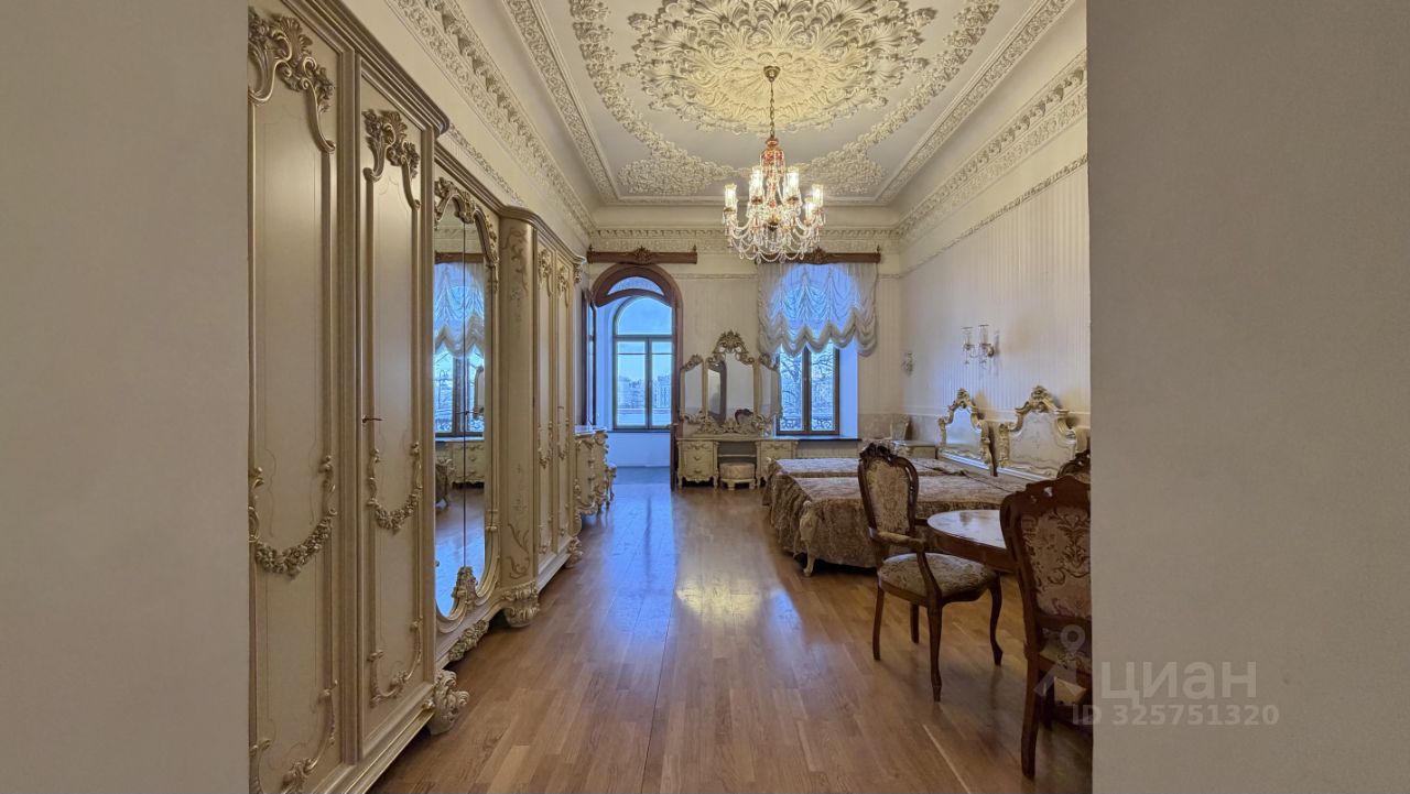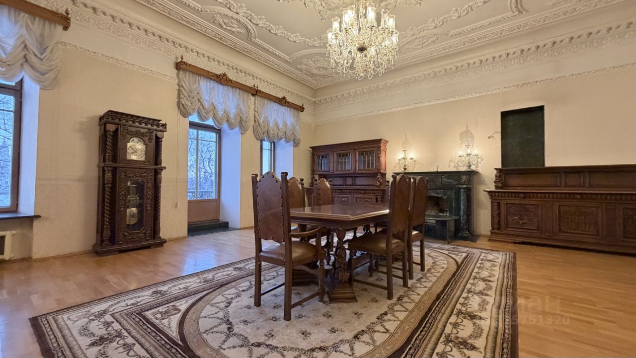 Атмосфера и интерьер: - Высокие потолки 4,4 м - Изысканная историческая потолочная лепнина - Шикарные арочные окна и дверные проемы с лепными орнаментами - Сохранённый шарм интерьера 2000х - Дорогая резная итальянская мебель