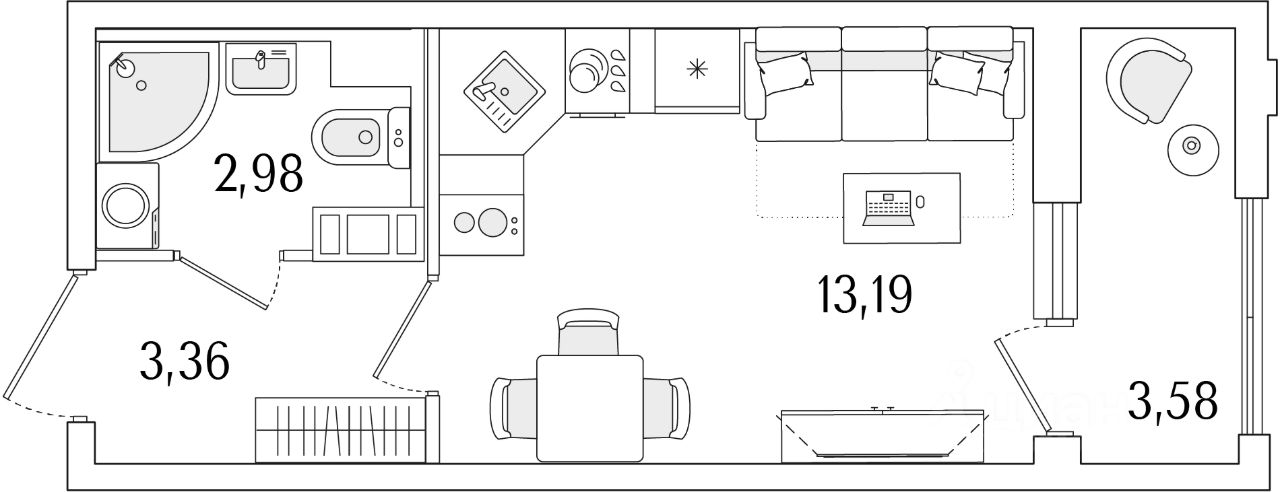 Общая площадь21,32 м2