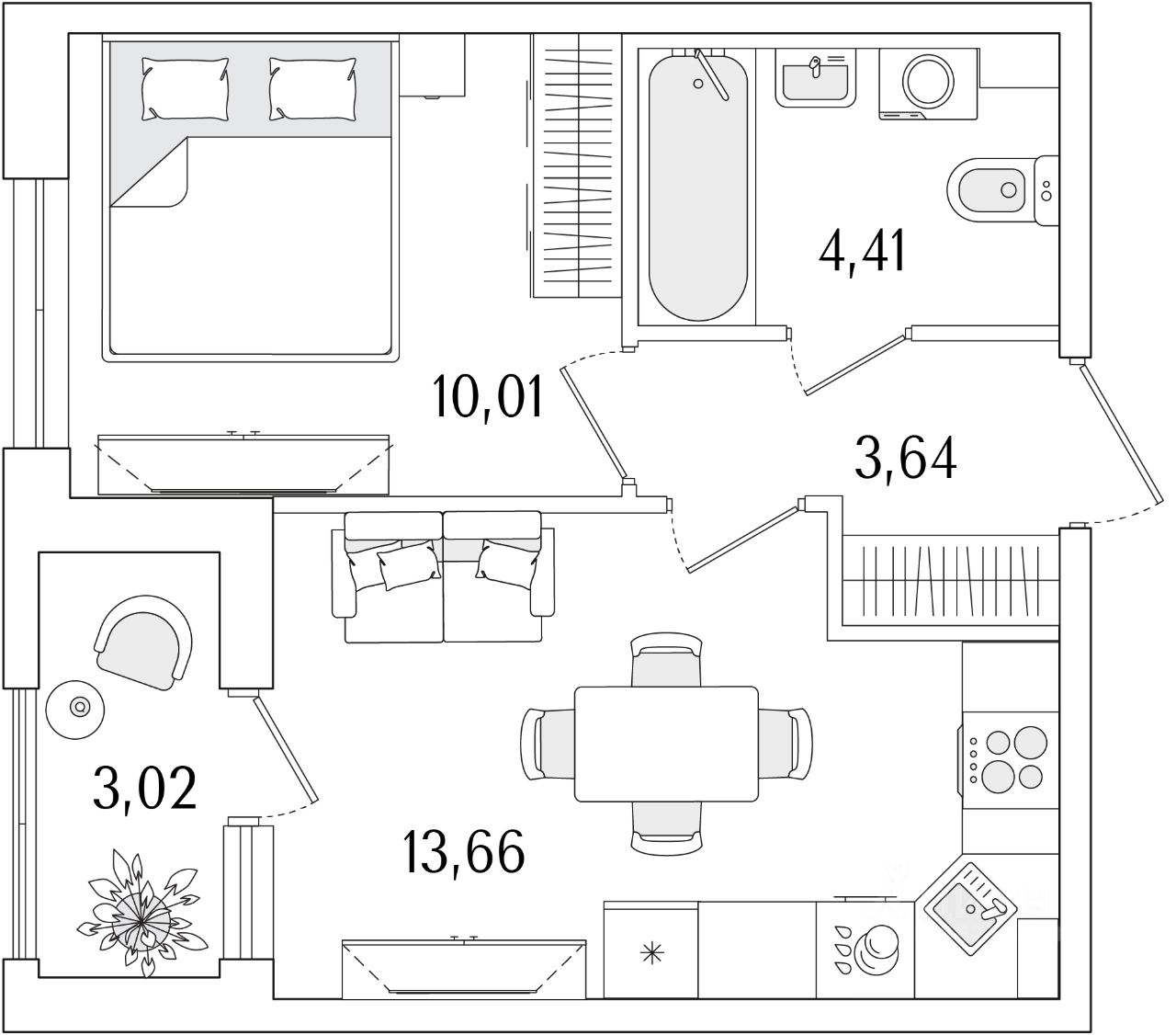 Кухни-гостиные с угловым остеклением. Просторные кухни-гостиные площадью более 20 м². Студии с двумя окнами. Ванные с окном Clerestory. Кухни-гостиные с выделенной нишей под кухню. Спальни с выделенной многофункциональной зоной, в которой можно организовать свой идеальный уголок. Квартиры с просторными лоджиями правильной квадратной формы.