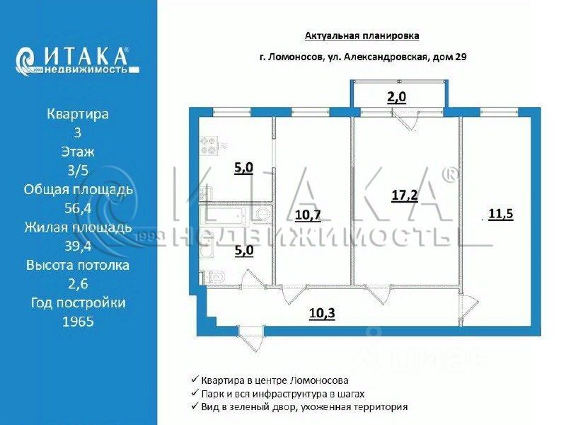 128586705 Центр Ломоносова, светлая трешка с умной планировкой. Готовый ремонт. Тихий двор.